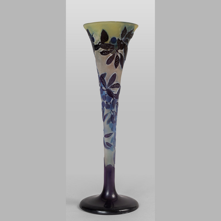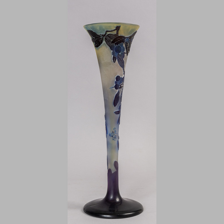 Vaso in vetro lavorato all'acido nei toni del blu f.to Gallè Francia inizi sec.XX