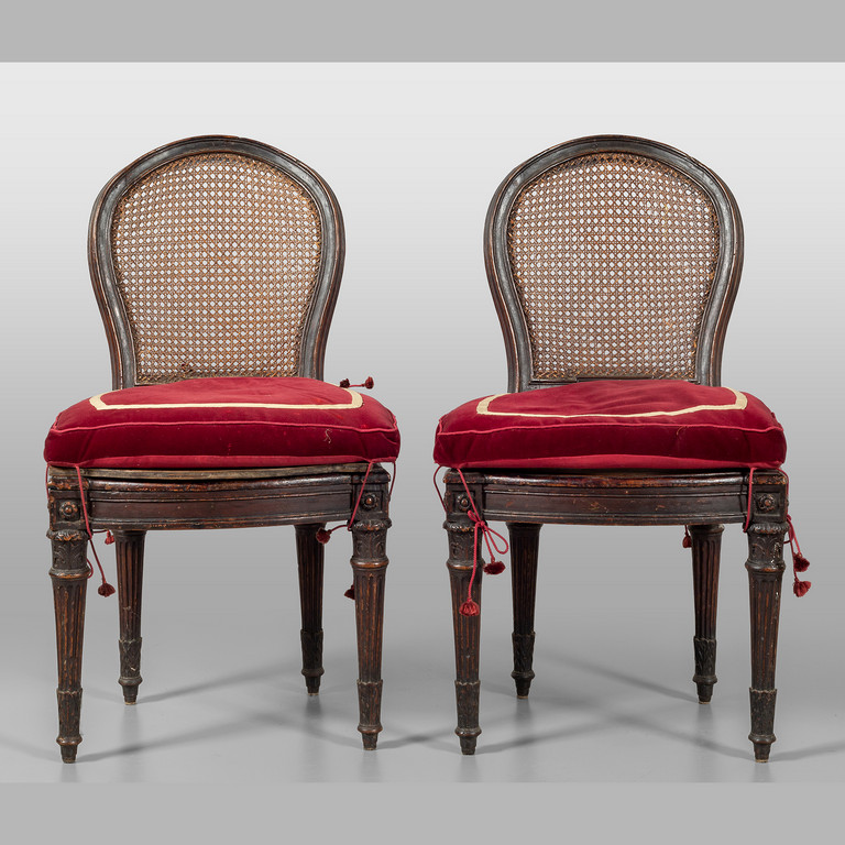 Coppia di sedie Luigi XVI in noce schienale a mongolfiera