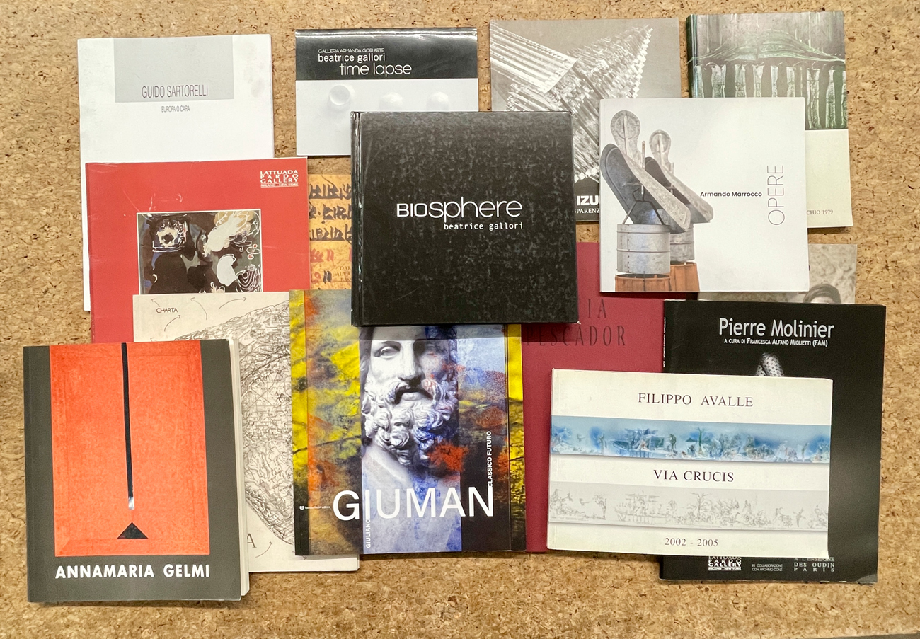 Lotto unico composto da 15 cataloghi relativi ai seguenti artisti: Lucia Pescador, Pierre Molinier, Guido Sartorelli, Noah Jemisin, Sesma, Giuman, Annamaria Gelmi, Beatrice Gallori (2), Armando Marrocco, Filippo Avalle, Franco Meneguzzo, Dario Basso (2) e Oki Izumi