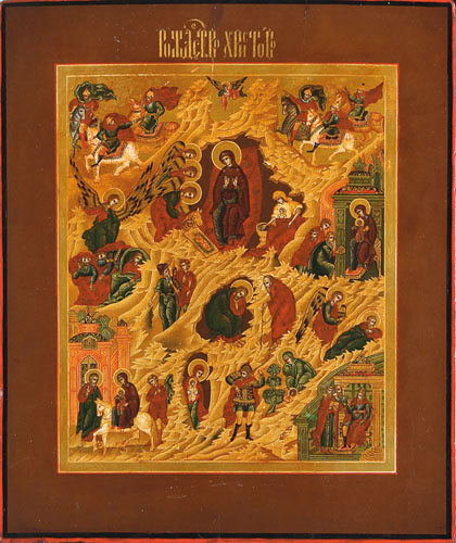 ICONA RUSSA DEL XIX SECOLO Natività e scene di vitaTempera all'uovo su...