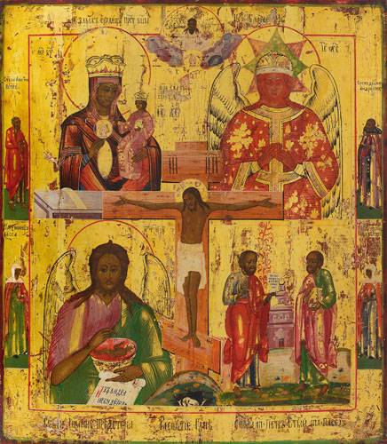 Lot 635 | ICONA RUSSA DEL XIX SECOLO Crocefissione con quattro sacre...