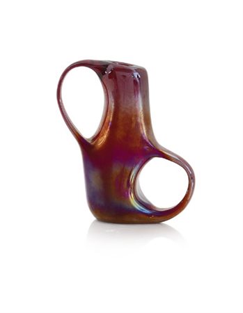 VASO "ANSE VOLANTI" IN VETRO ROSSO IRIDATO, A.VE.M., G.FERRO, ANNI '60 a doppia ansa.