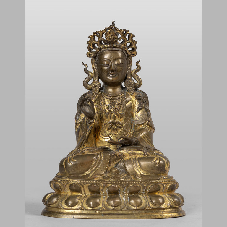Amoghasiddhi Budda scultura in bronzo dorato Cina sec.XVIII