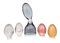 DUE UOVA IN CRISTALLO SOMMERSO, VENINI, ANNI '70; UN UOVO IN VETRO CON INCLUSIONI IN ORO, A.SEGUSO, ANNI '60; UN UOVO IN VETRO SOMMERSO E UNA SCULTURA IN VETRO FUME', LIVIO SEGUSO, ANNI '90; firme alla punta "venini italia", "venini italia tw", "archimede seguso murano", "Livio Seguso" e una non comprensibile.