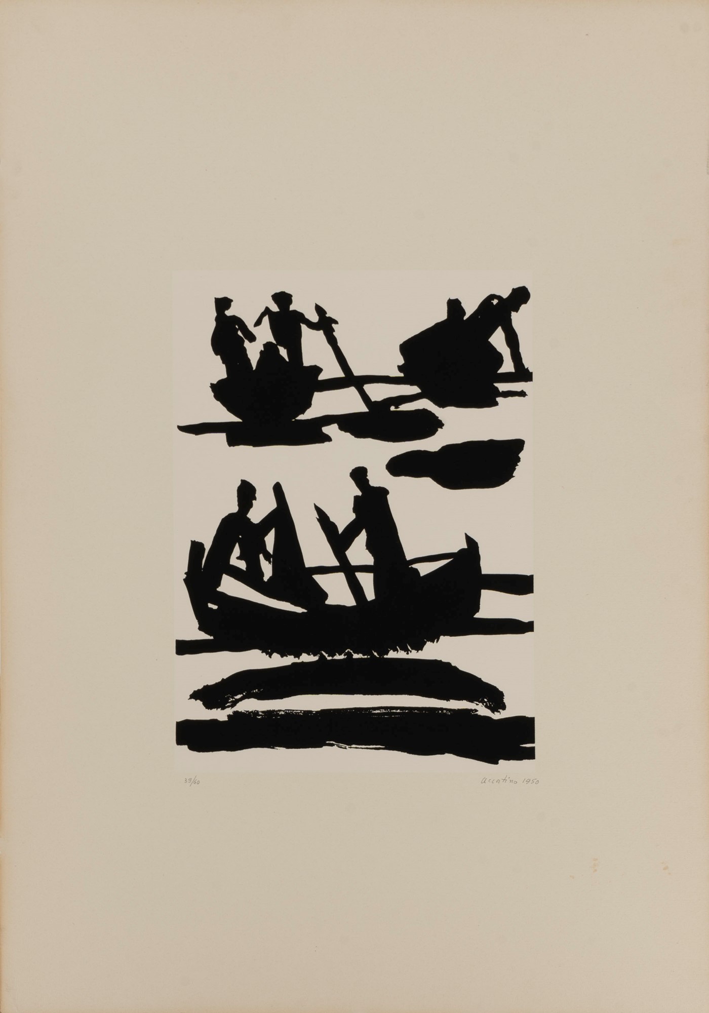 Enrico Accatino (Genova 1920-Roma 2007) - Uomini in barca, 1950