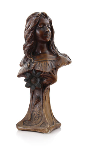 SCULTORE DEL XIX SECOLO Busto di fanciulla Scultura Liberty in stucco...