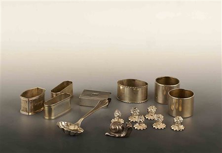 Lotto composto da quindici oggetti in argento, fogge e misure diverse, gr. 245 circa.