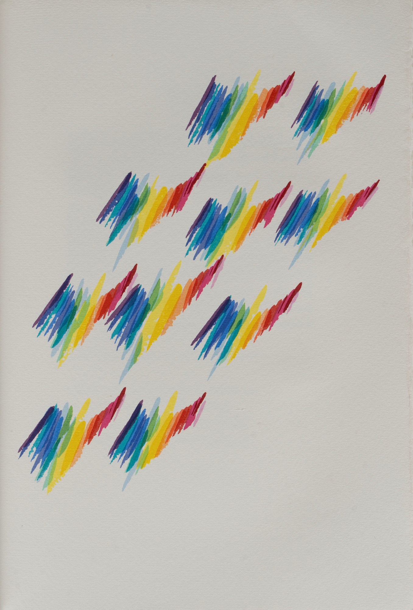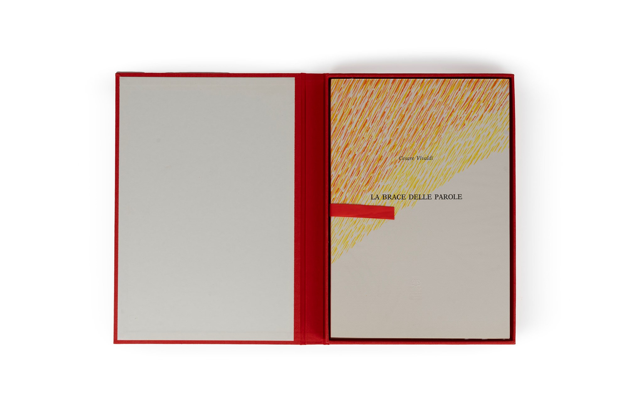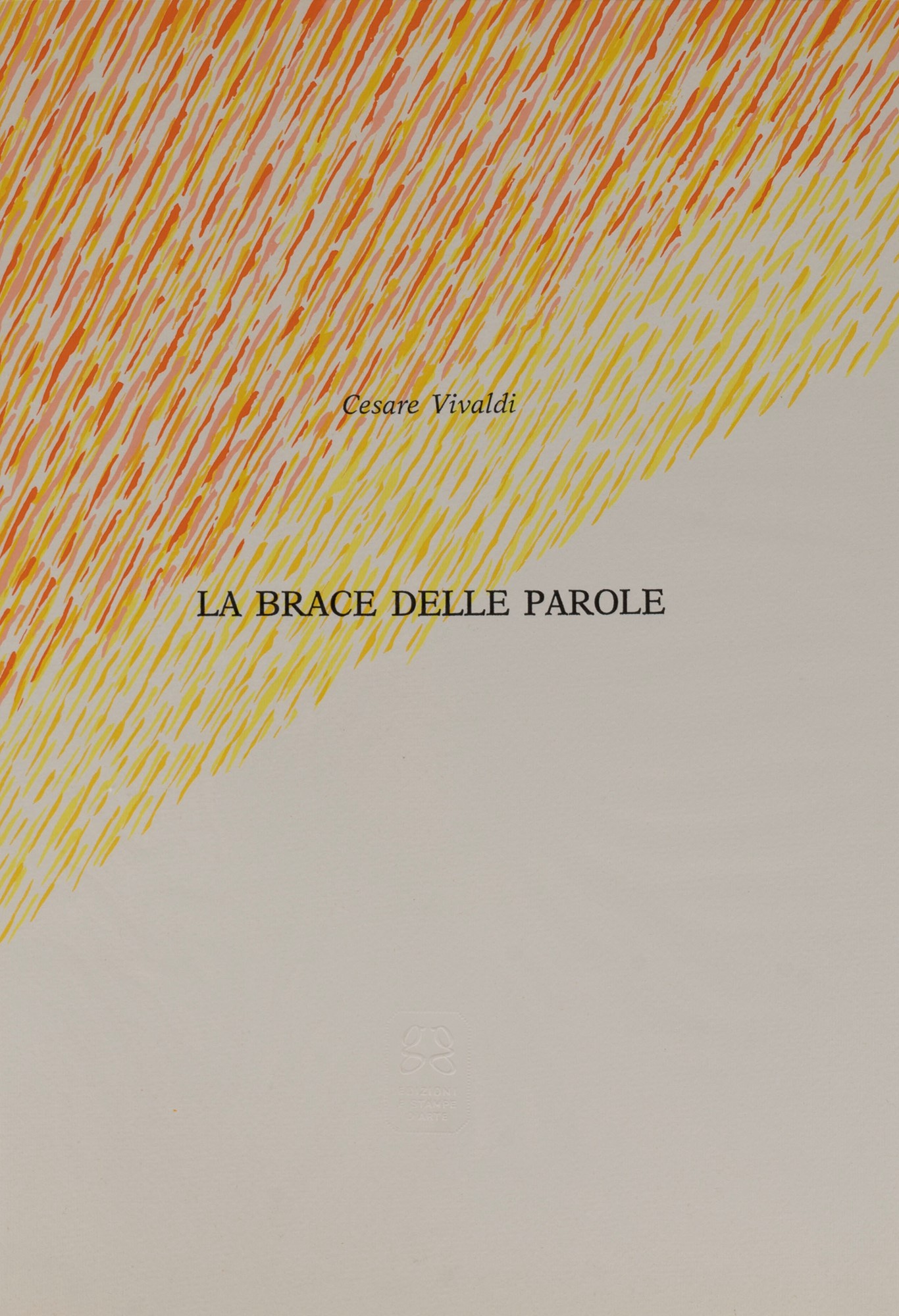 Volume contenente 22 poesie di Cesare Vivaldi e 3 serigrafie a colori di Piero Dorazio, delle quali due legate nel testo e una in copertina, es. 107/500 (dalla tiratura di 500 ess. contrassegnati in numeri arabi e 100 copie F.C.)