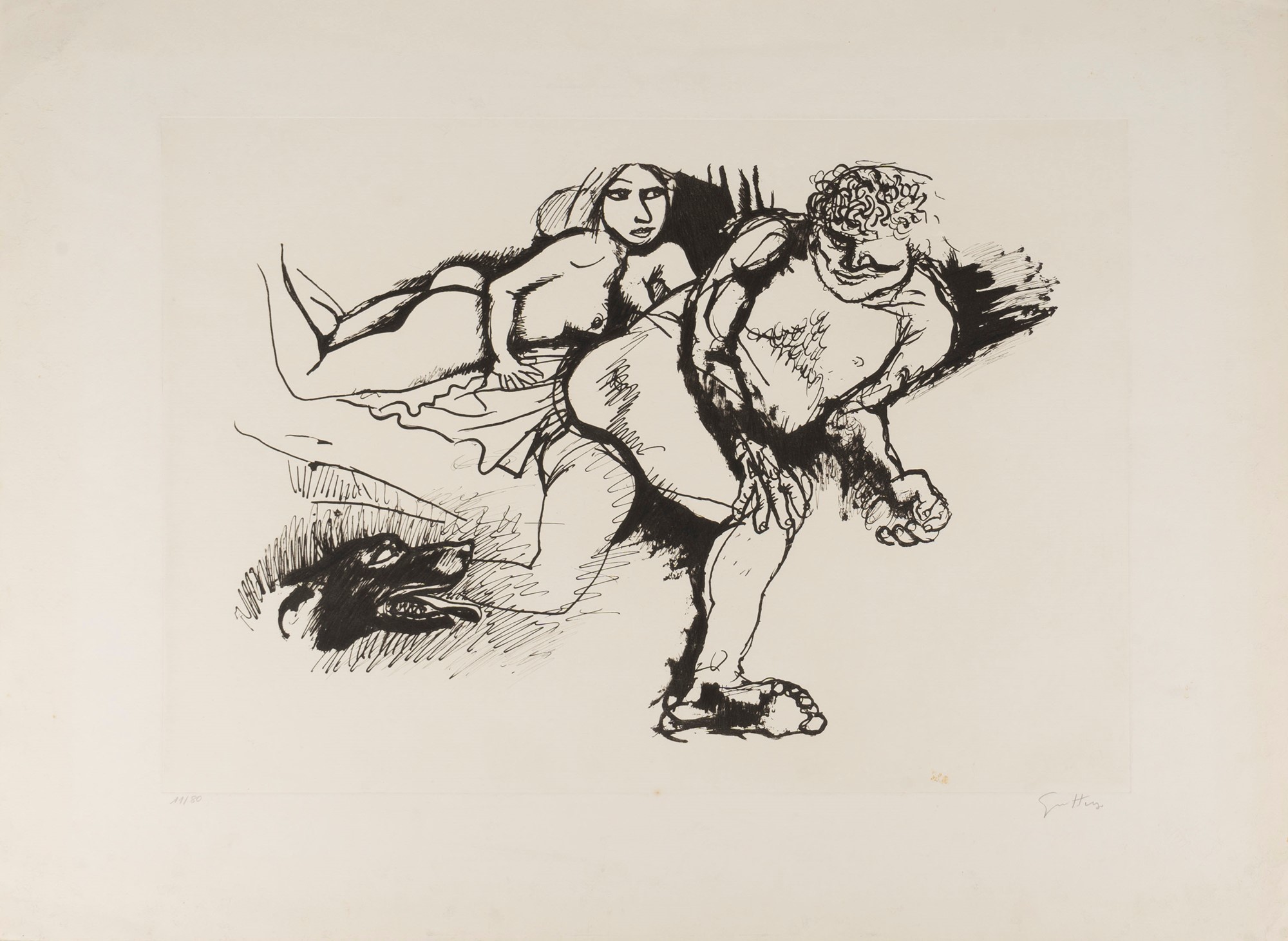 Renato Guttuso (Bagheria 1911-Roma 1987) - Coppia con cane