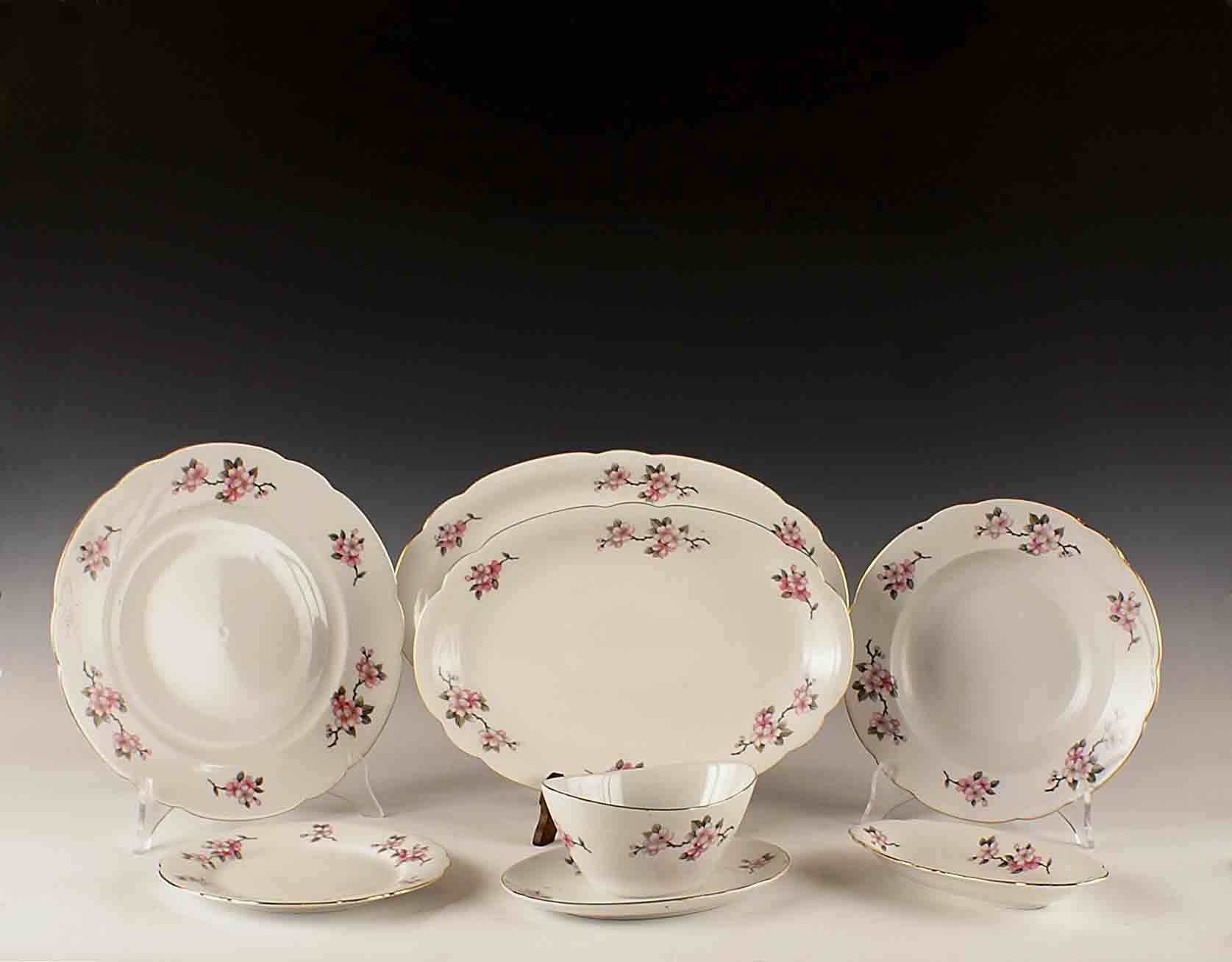 Servizio di piatti in porcellana decorata a motivo floreale composto da 8...