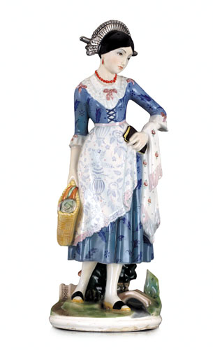 FIGURA IN CERAMICA "LOMBARDIA - LUCIA", LENCI, ANNI '40, decoro policromo.
