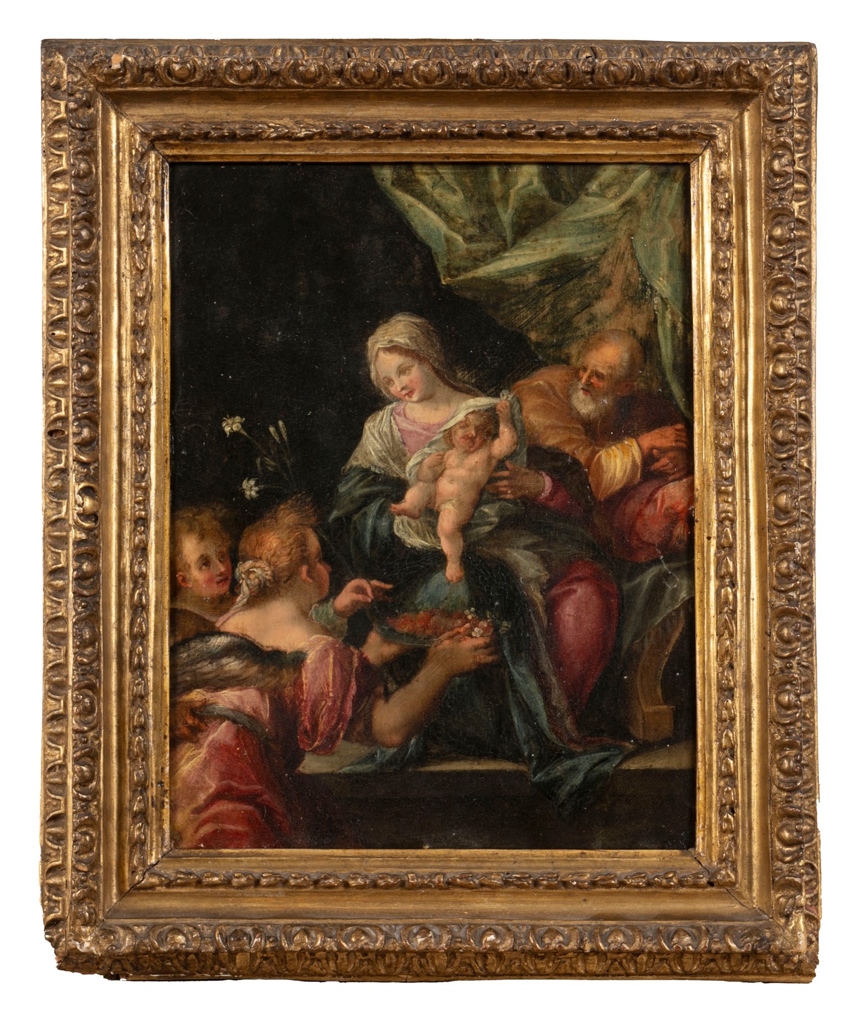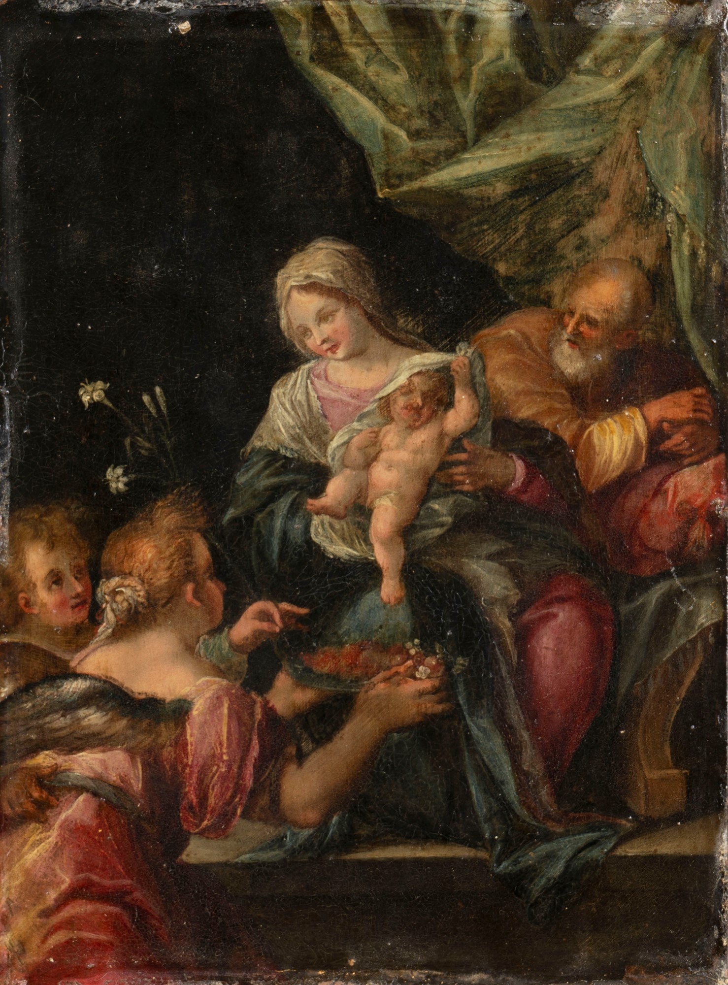 Scuola fiamminga, fine secolo XVI - inizi secolo XVII - Sacra Famiglia con due Angeli
