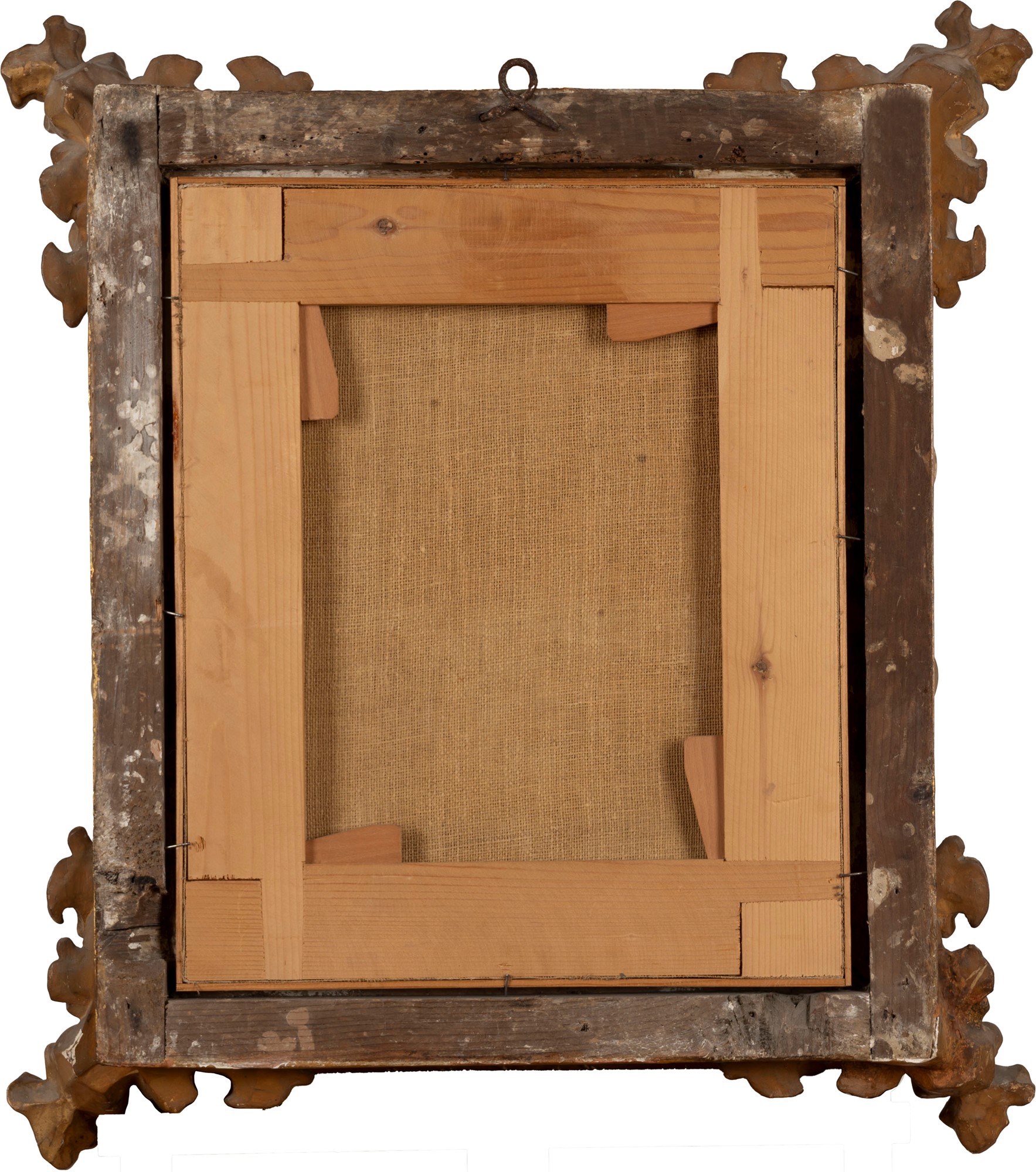 olio su tela, in ovale dipinto, entro cornice intagliata e dorata