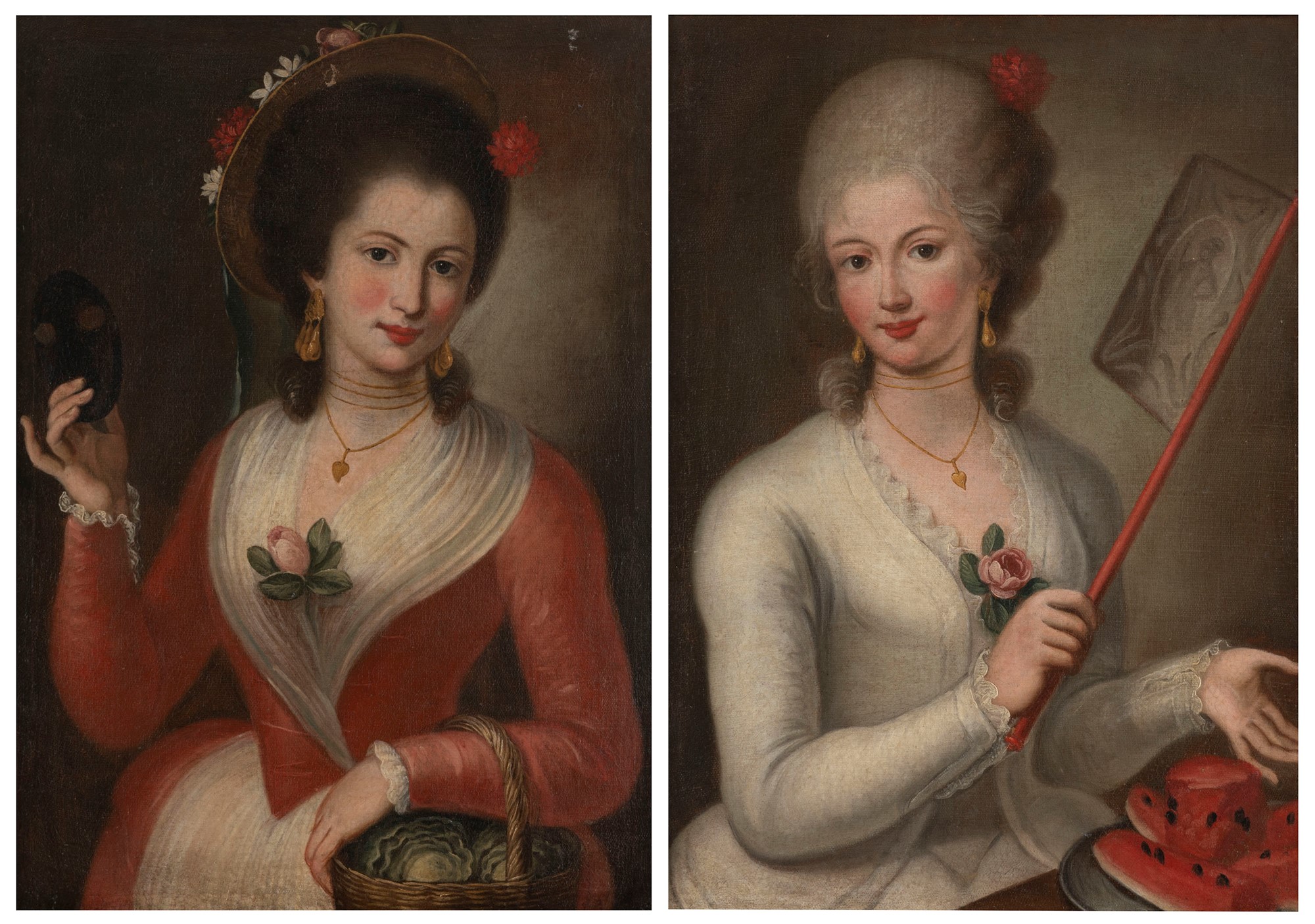 Lot 41 | Scuola italiana, secolo XVIII - Due ritratti di giovinette a mezzo busto