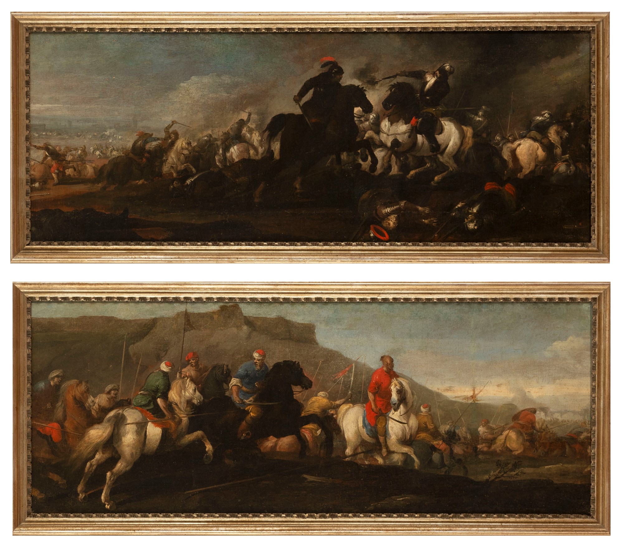 Scuola romana, secolo XVII - Due scene di battaglia