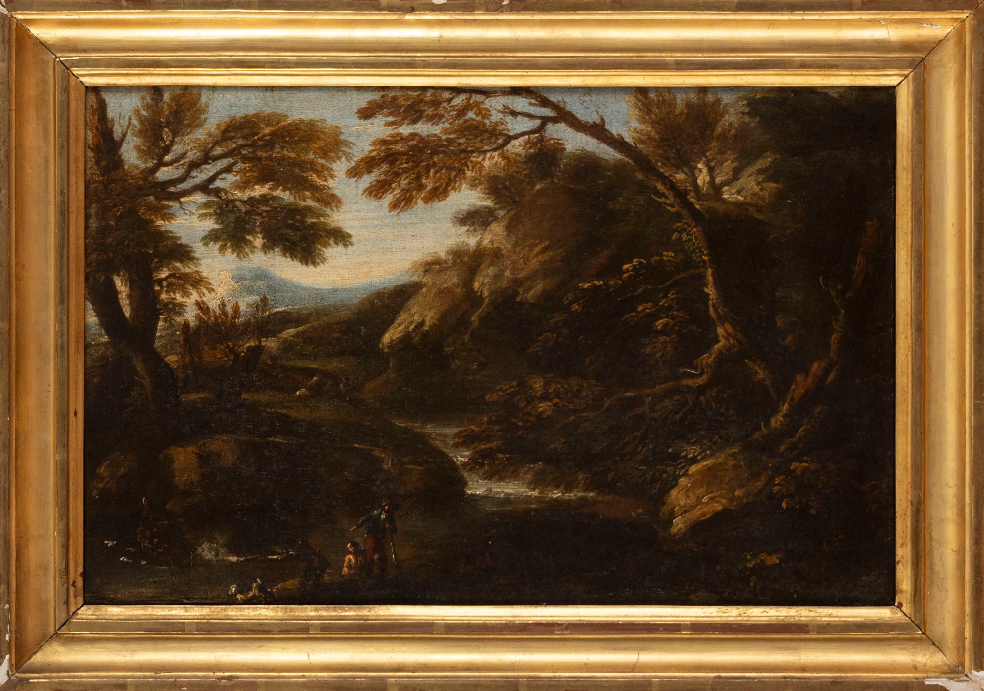 Scuola napoletana, secolo XVII - Due paesaggi con figure