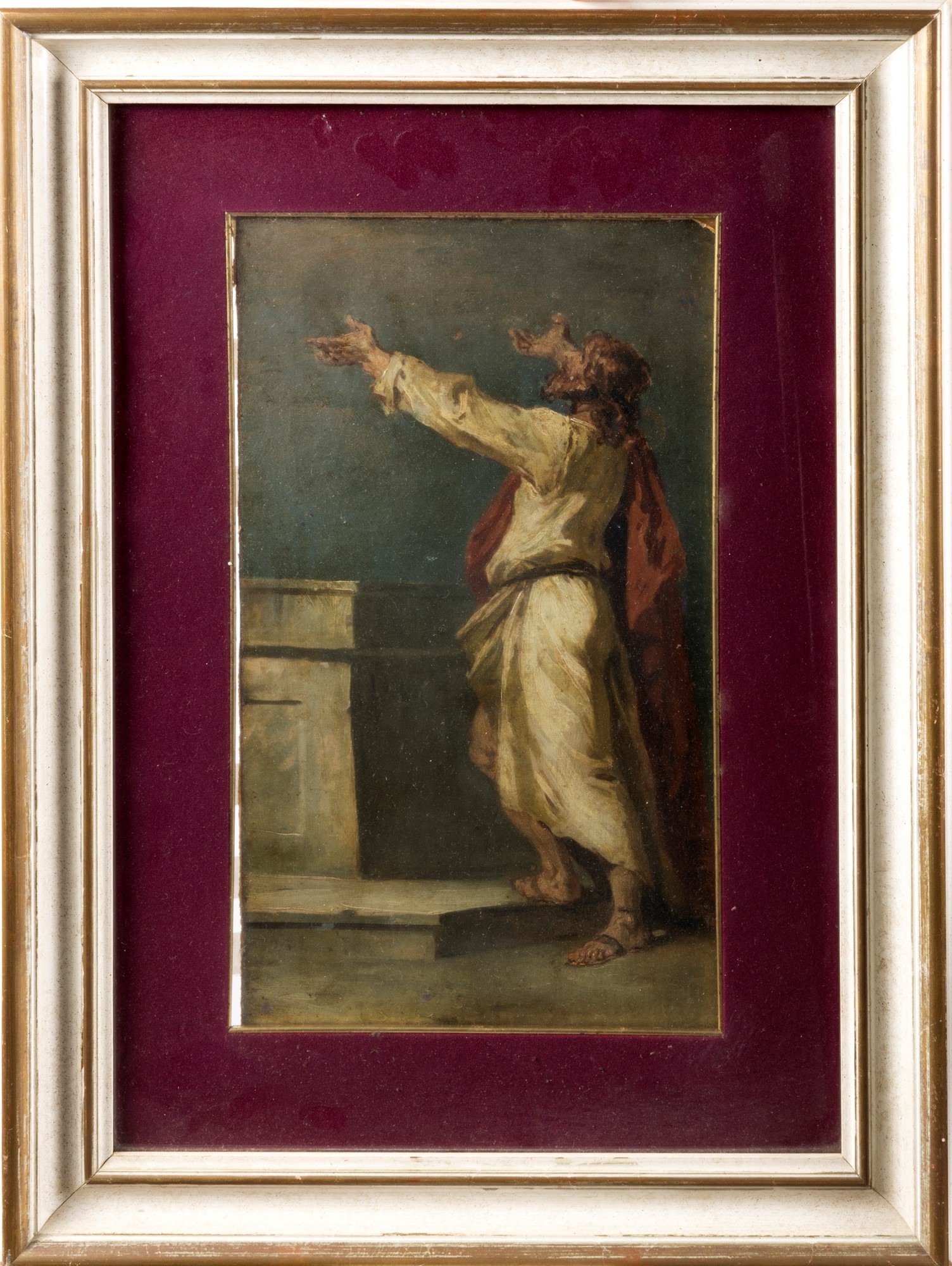 Il dipinto costituisce uno studio o un "ricordo" per la figura dell'apostolo, a destra, dell'Assunzione della Vergine nella chiesa di San Carlo Borromeo a Vienna. Di questa pala d'altare sono anche noti due bozzetti, uno a Budapest, Museo delle Belle Arti, ed uno a Praga, Narodni Galerie. La figura dell'apostolo, offerta nel lotto, è stilisticamente più vicina alla versione di Praga ma è caratterizzata, come tutte le altre versioni note, da un forte patetismo e un sicuro effetto scenico.
