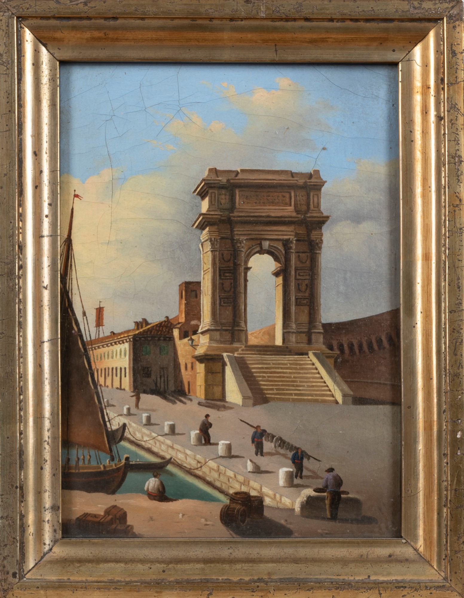 una raffigura il Porto dal mare, l'altra l'Arco di Traiano