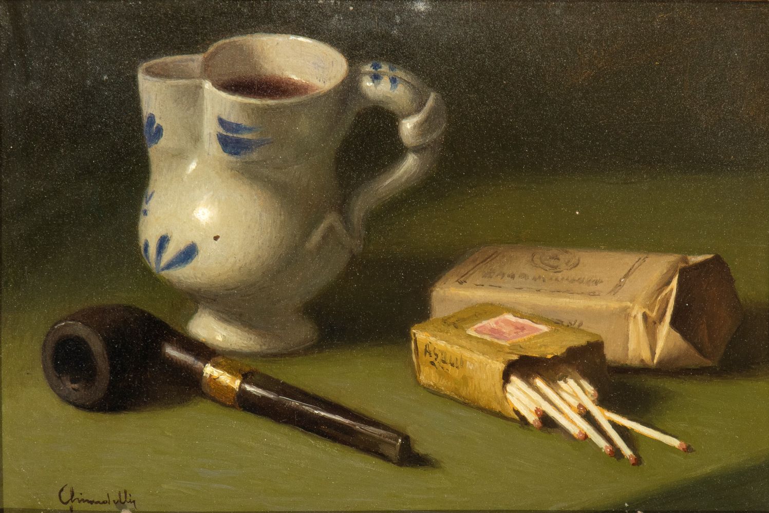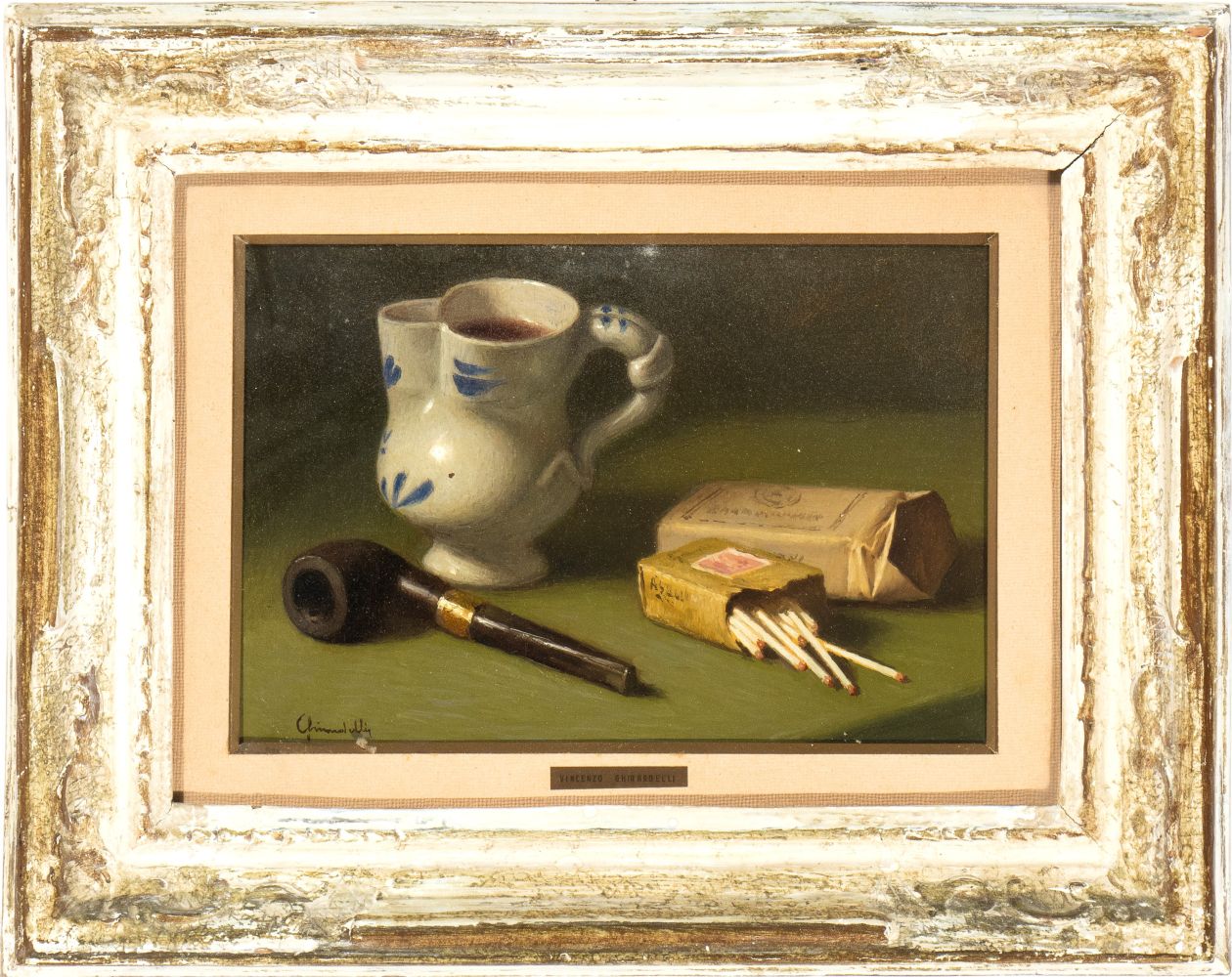 VINCENZO GHIRARDELLI (Gandino 1894-1967), Natura morta con pipa e fiammiferi