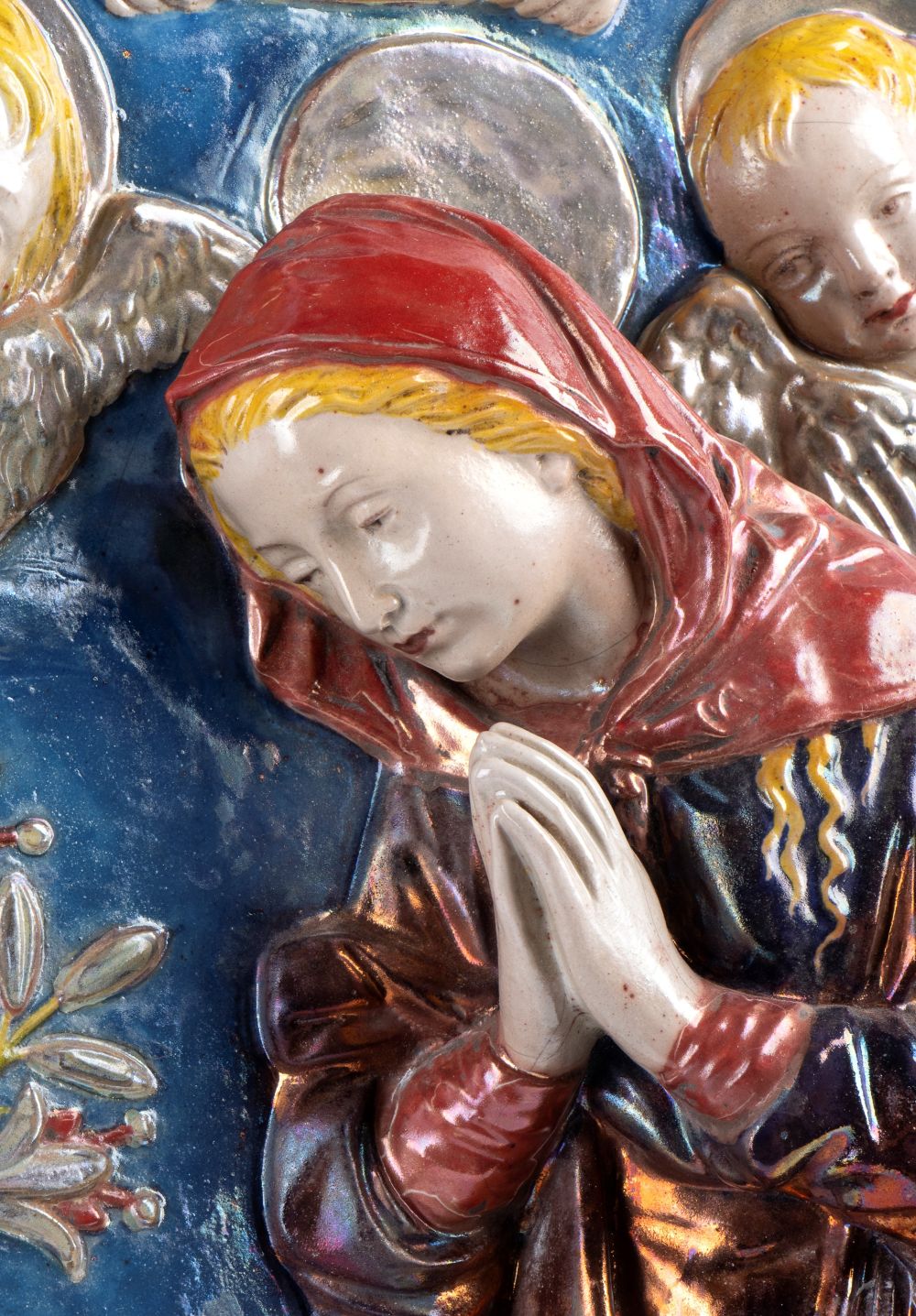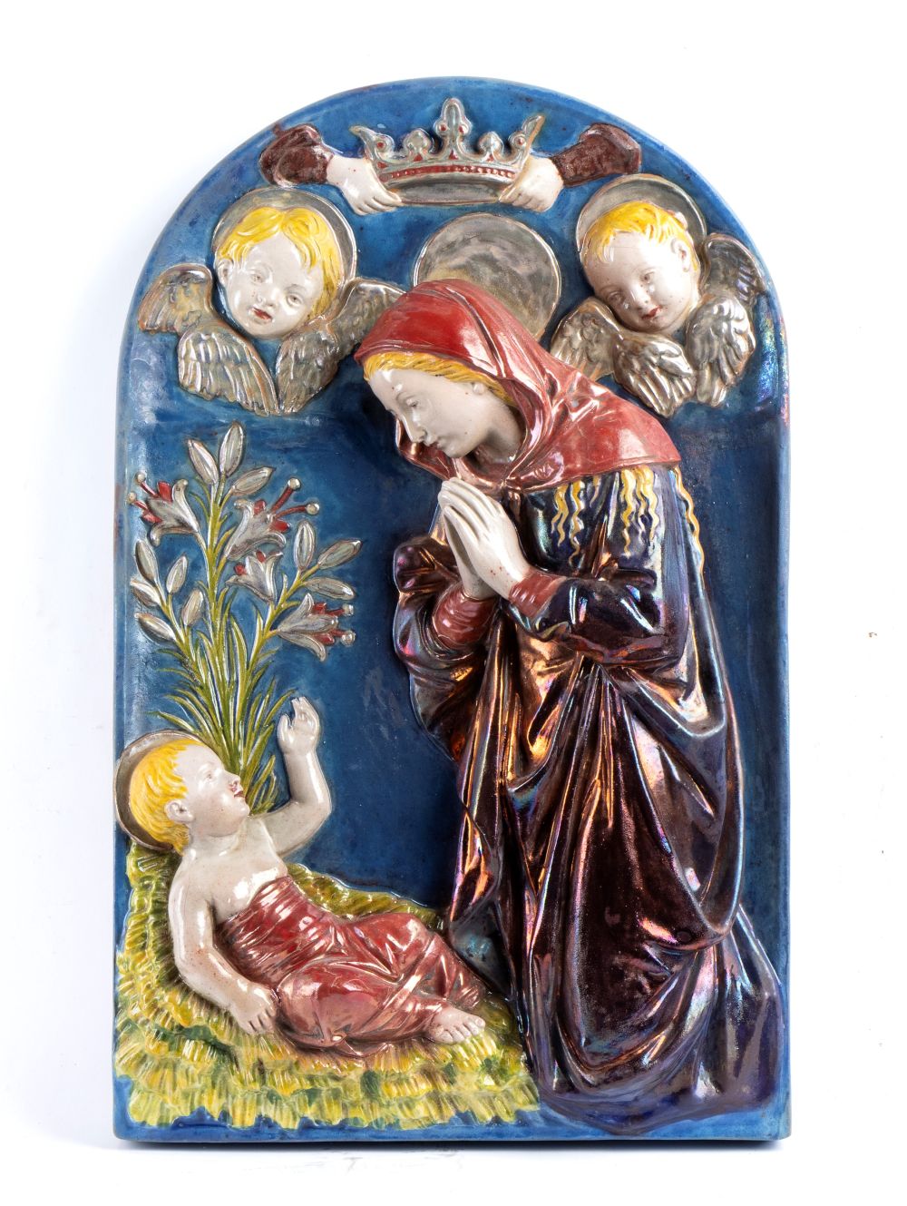 Firma, timbro e numero incussi nella pasta al retro: Cantagalli, Firenze (Italy), 382. Soggetto tratto da bottega di Andrea della Robbia