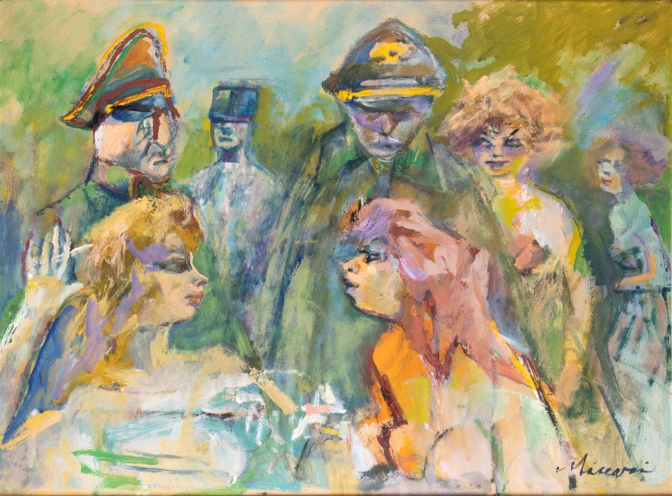 MINO MACCARI (Siena 1898-Roma 1989), Militari e giovani donne