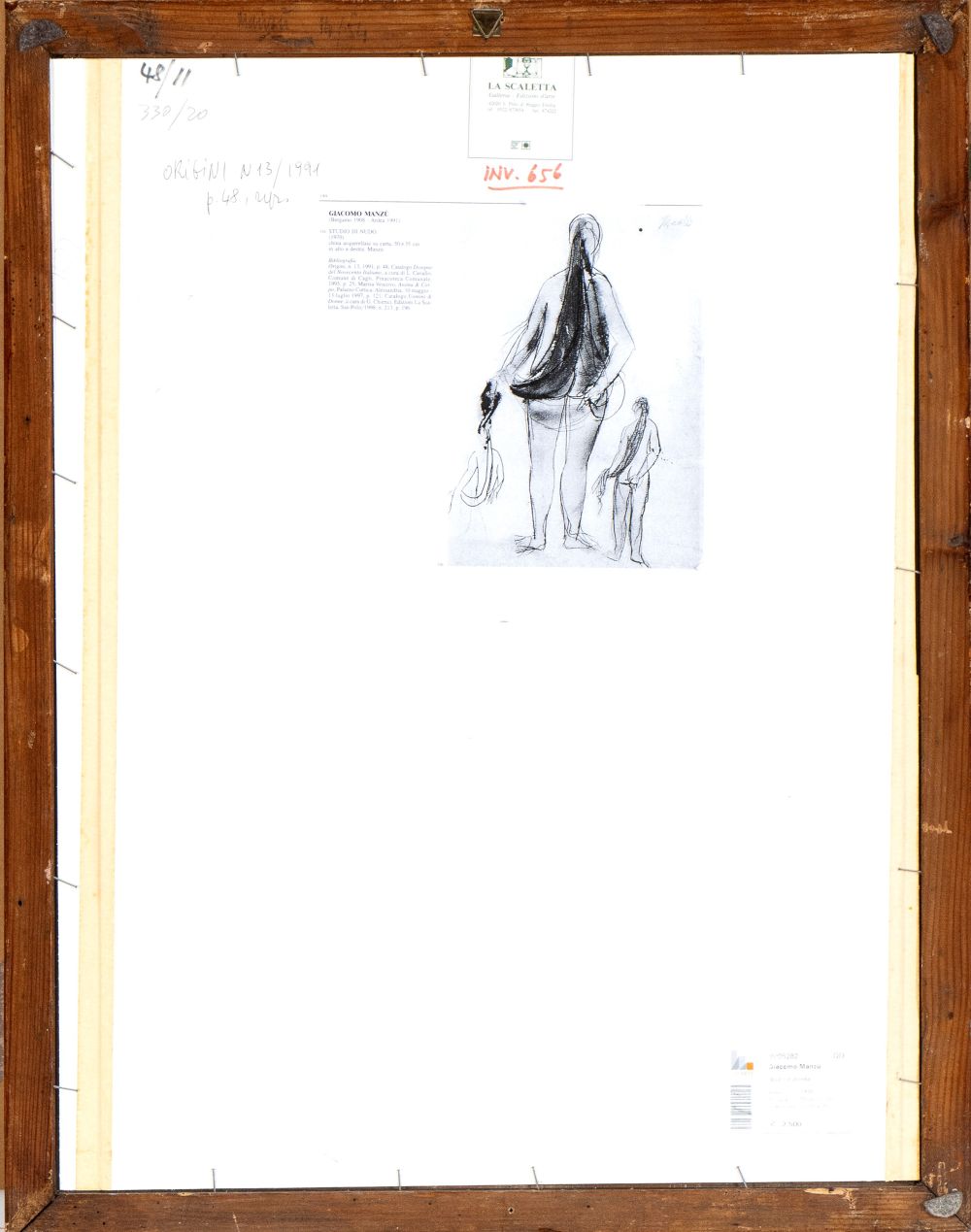 Firmato in alto a destra: Manzù, al retro etichetta della Galleria La Scaletta di Reggio Emilia