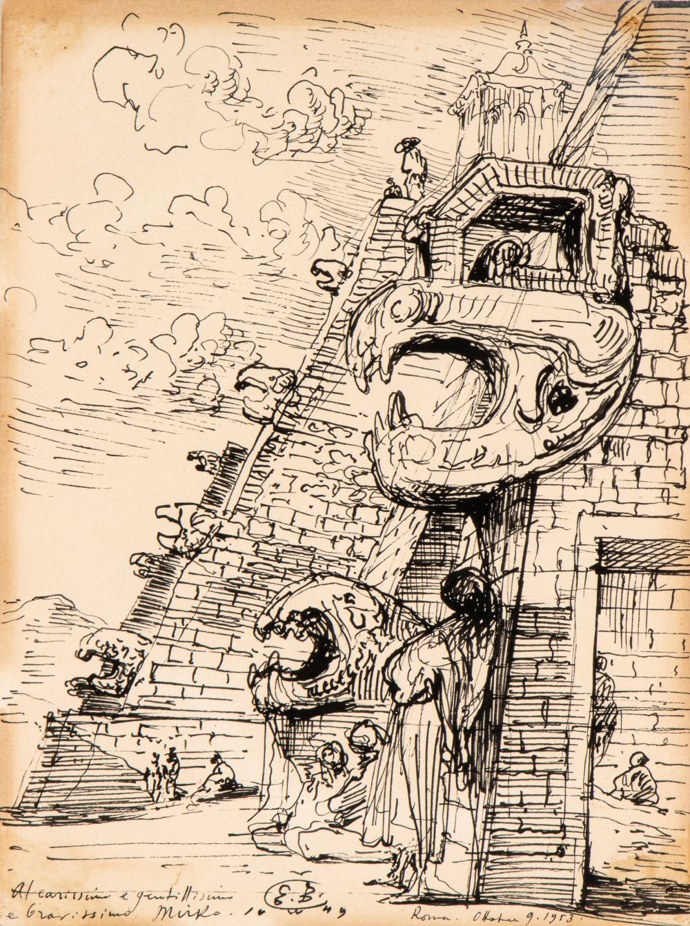 Firmato, datato con dedica in basso a sinistra: Al carissimo e gentilissimo e gratissimo Mirko, Roma Ottobre 09.1953; E.B. 1949; datato al retro: Mexico 1949