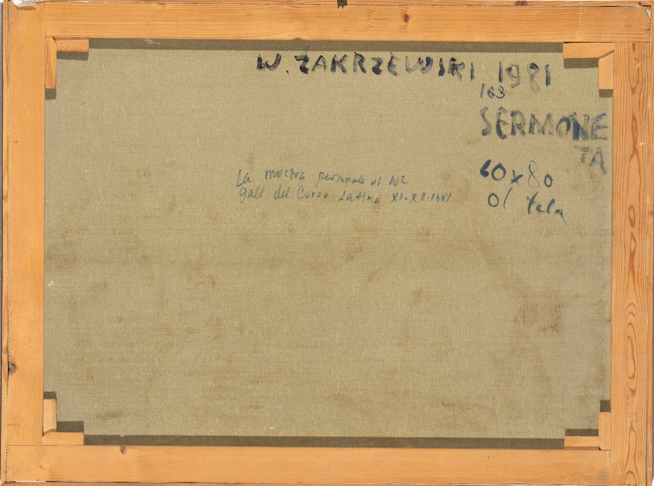 Firmato in basso a destra: W. Zakrzewski, datato in basso a sinistra: 1981; al retro: W. Zakrzewski, 1981, Sermoneta, mostra personale di W.Z. Galleria del Corso, Latina, XI - XII- 1981