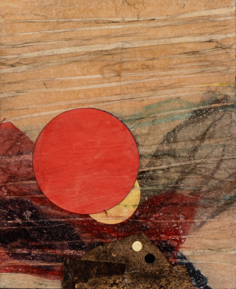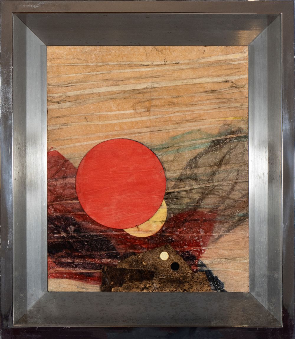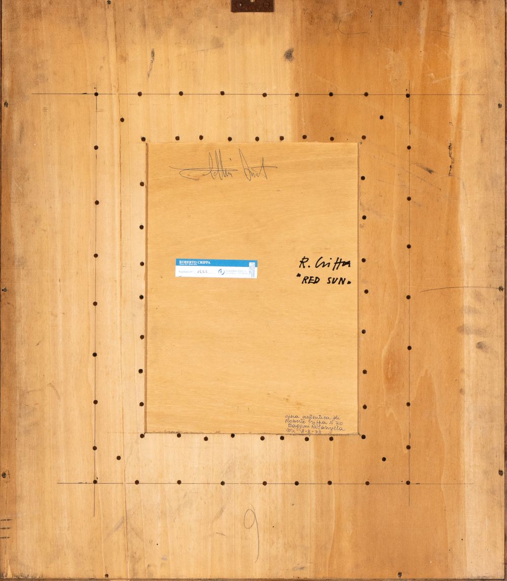 Firmato e datato al retro: R. Crippa, Red Sun; al retro: etichetta della Galleria Pace di Milano e dichiarazione di autenticità di Rosangela Baggini, n. 710, Milano, 08 marzo 1973