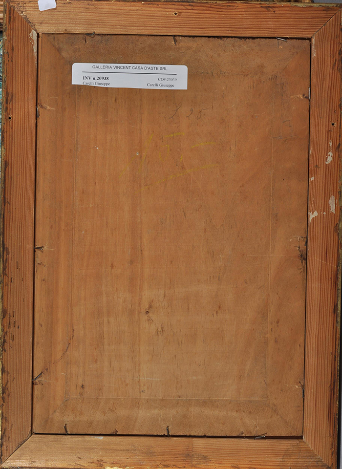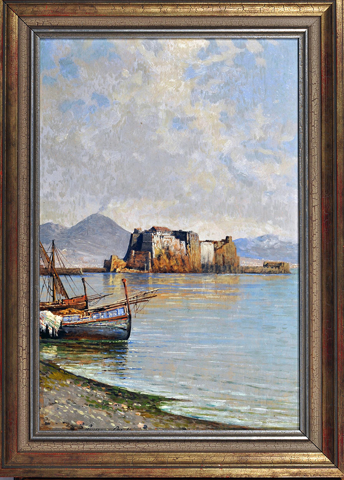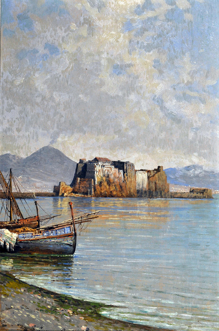 Carelli Giuseppe (Napoli, 1858 –1921) Castel dell'Ovo olio su tavola. cm 33x25 firmato in basso a sinistra: G Carelli