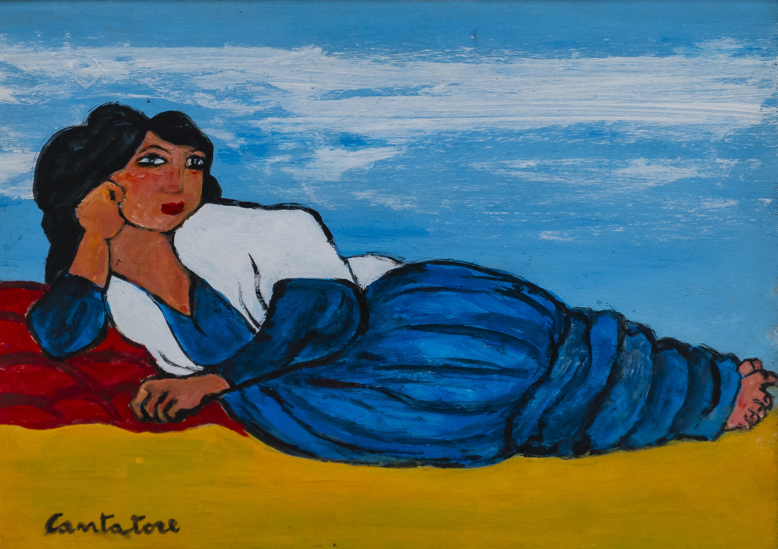 CANTATORE DOMENICO (1906 - 1998) Odalisca. Olio su tavola. Cm 35,00 x 25,00. Firma in basso a sinistra e al retro. Autentica dell'artista su fotografia. Cornice presente