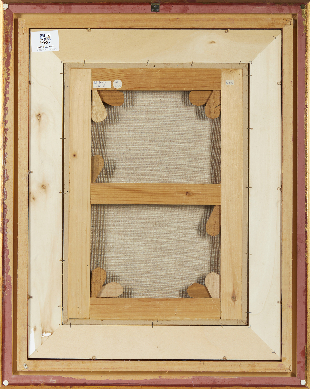 SQUILLANTINI REMO (1920 - 1996) Senza titolo. 1994. Tecnica mista su carta applicata su tela . Cm 35,00 x 50,00. Firma in basso a sinistra. Opera registrata presso l'Archivio Remo Squillantini - Bianco Giovanbattista come da documentazione fotografica allegata all'opera riportante il relativo numero d'inventario e la firma dell'artista. Cornice presente