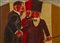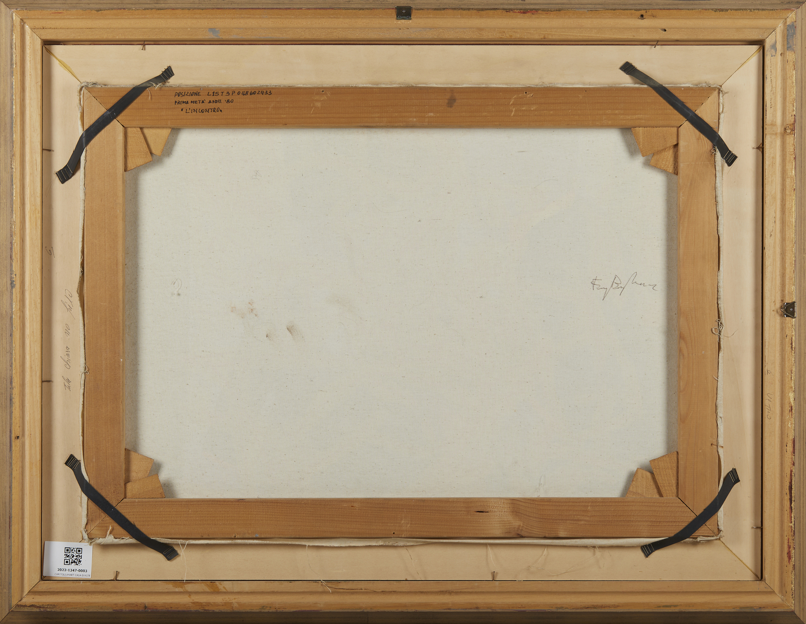 BORGHESE FRANZ (1941 - 2005) Incontro. Olio su tela . Cm 70,00 x 50,00. 1980-1985. Firma in basso a destra e al retro. Autentica dell'artista su fotografia riportante il relativo numero d'inventario. Opera in fase di archiviazione presso lo Studio Franz Borghese. Lievi difetti. Cornice presente