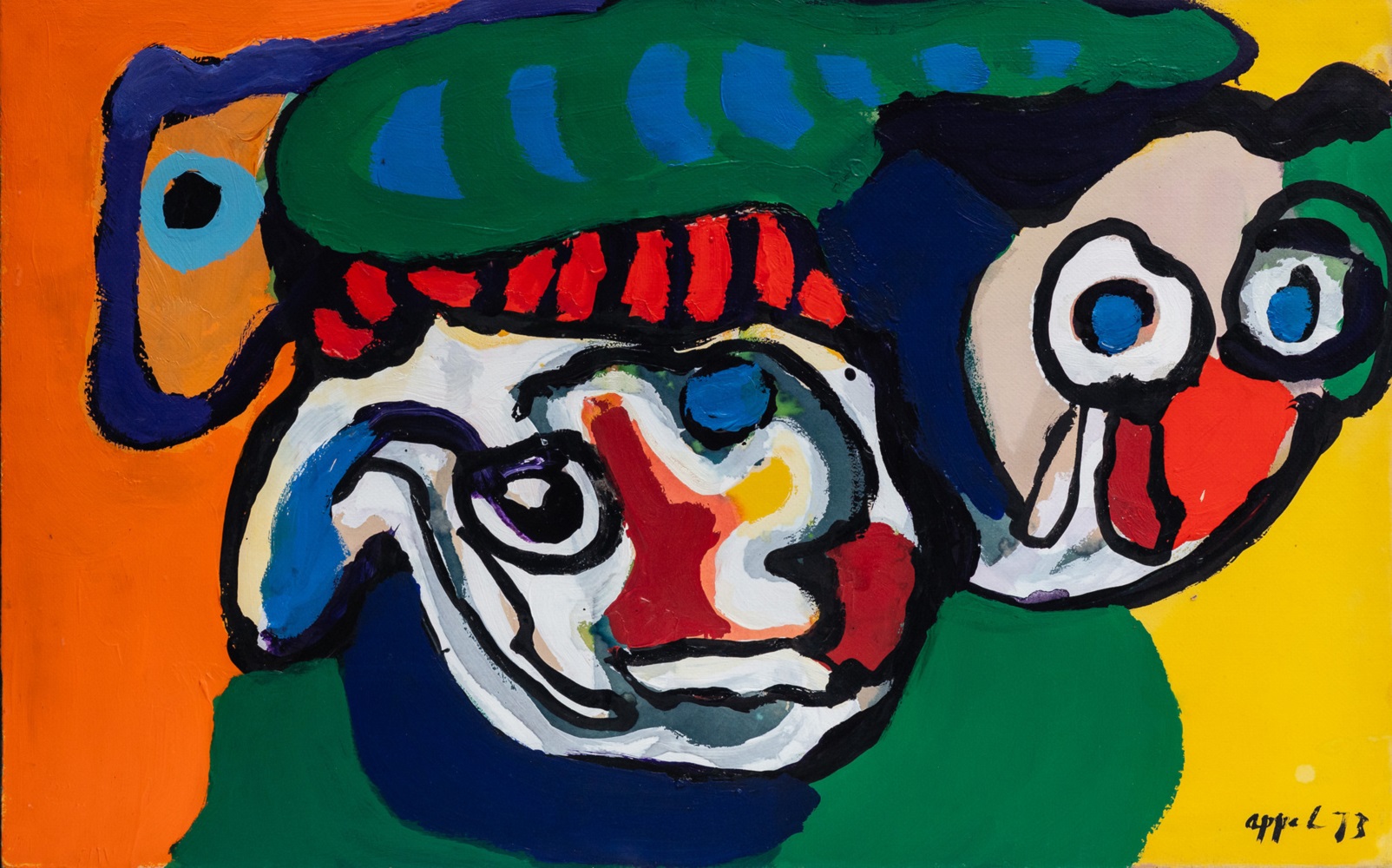 APPEL KAREL (1921 - 2006) Senza titolo. 1973. Olio su carta intelata. . Cm 70,00 x 50,00. Firma e anno in basso a destra.