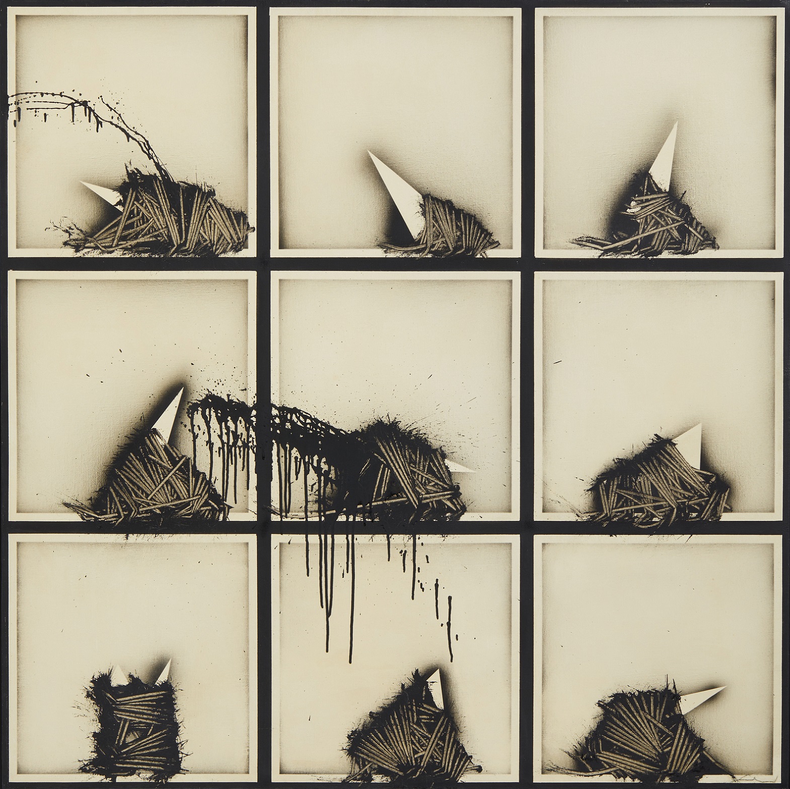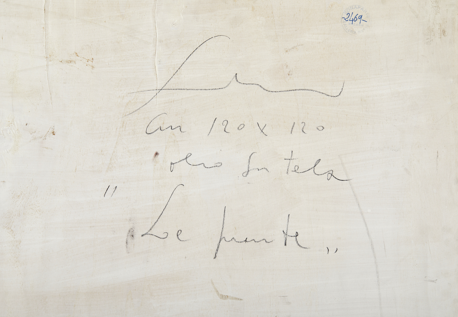 SCANAVINO EMILIO (1922 - 1986) Le punte. 1974. Acrilico su tela. Cm 120,00 x 119,00. Firma in basso a destra. Al retro firma dell'artista, titolo e timbro della Galleria Bonaparte, Milano. Pubblicazione: Catalogo generale Emilio Scanavino a cura di Giorgina Graglia Scanavino e Carlo Pirovano, Volume II, Electa Edizioni, n. 1974 -123. Autentica su fotografia a cura dell'Associazione Emilio Scanavino, Milano. Provenienza: Studio dell'artista; Collezione privata, Roma.