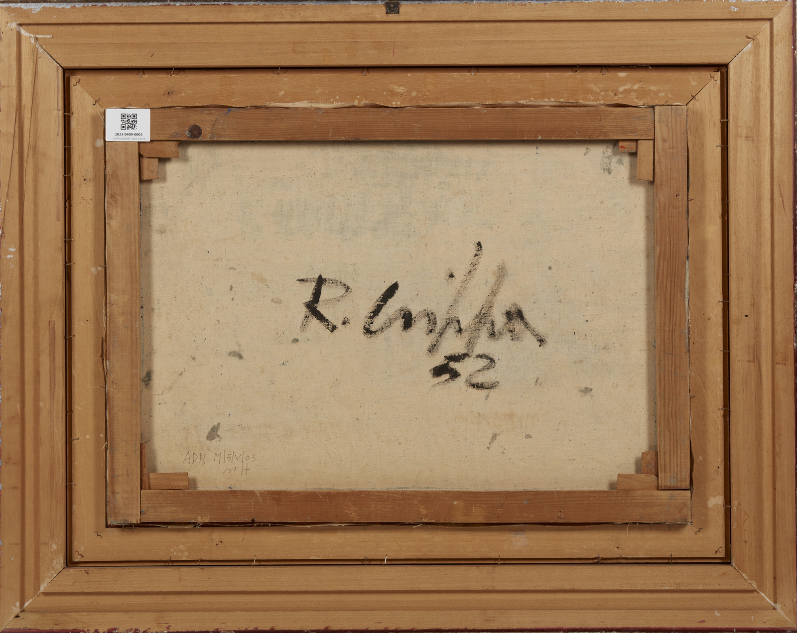CRIPPA ROBERTO GAETANO (1921 - 1972) Spirale. 1952. Olio su tela . Cm 70,00 x 50,00. Al retro firma e anno. Autentica su fotografia di Roberto Crippa Jr riportante il relativo numero d'inventario. Cornice presente