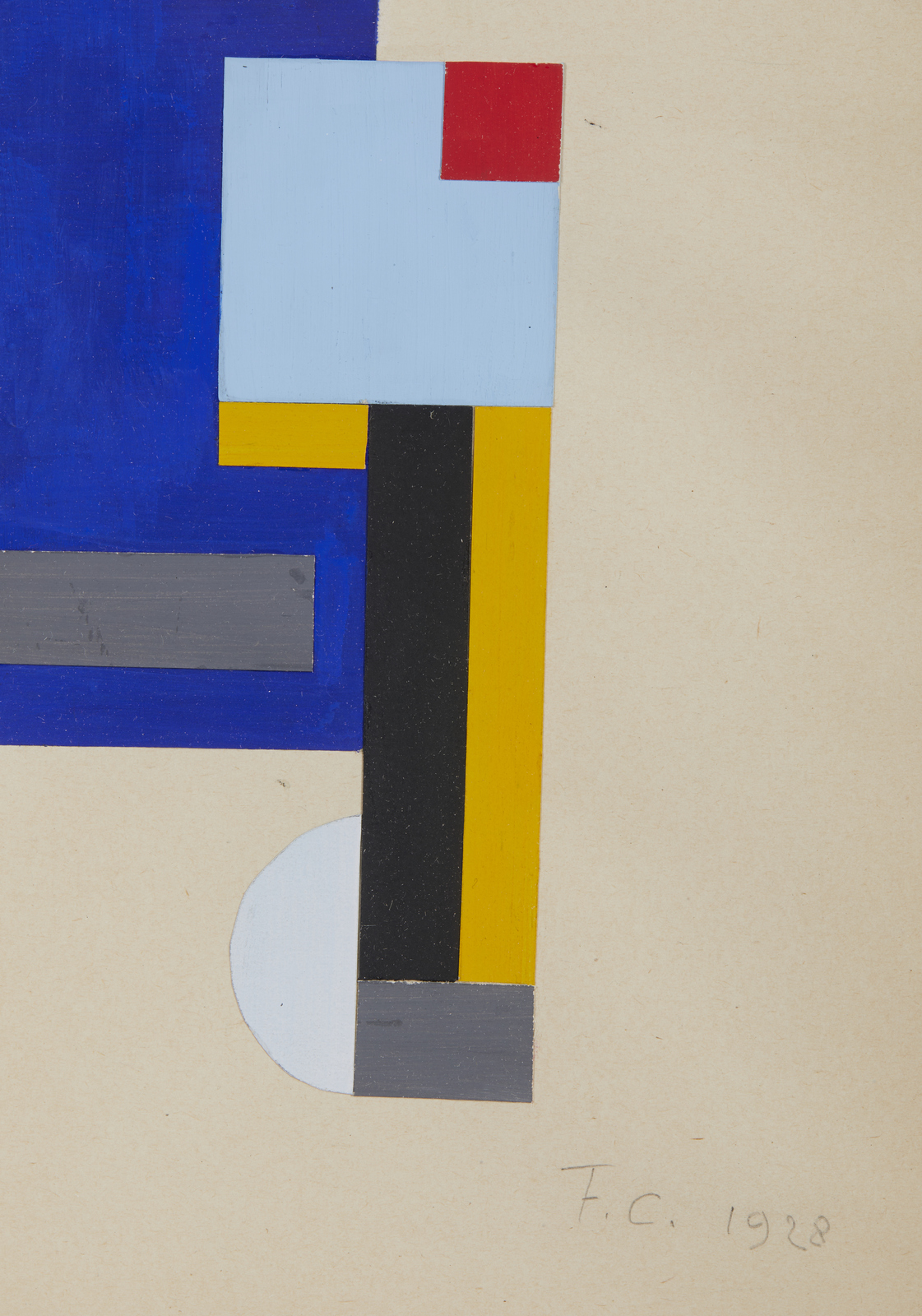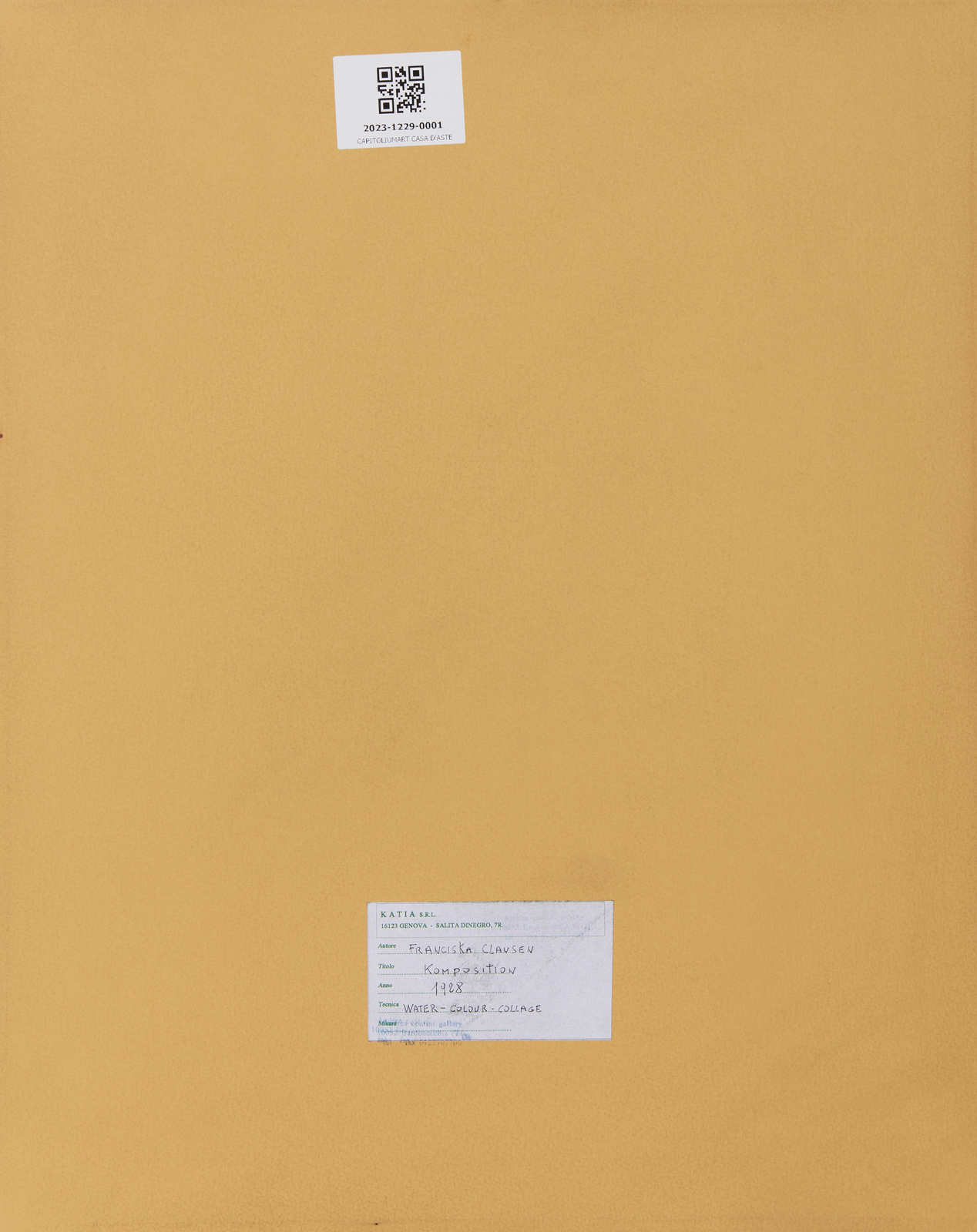 CLAUSEN FRANCISKA (1899 - 1986) Komposition. 1928. acquerelli e collage. Cm 28,00 x 37,50. Monogramma e data in basso a destra. Al retro etichetta Katia Gallery s.r.l. Genova. Cornice presente