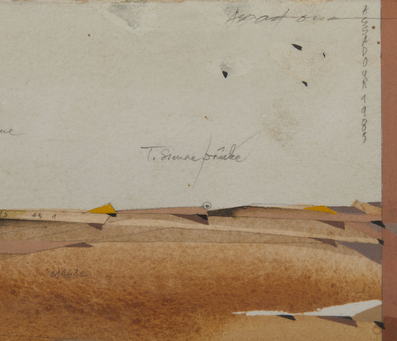ASSADOUR BEZDIKIAN (n. 1943) No man's land III. 1983. Acquarello e tempera su cartoncino. Cm 75,80 x 56,50. Pubblicazione: Acquerelli di Assadour a cura Enzo Bilardello, Edizioni Della Cometa, p. 30.
