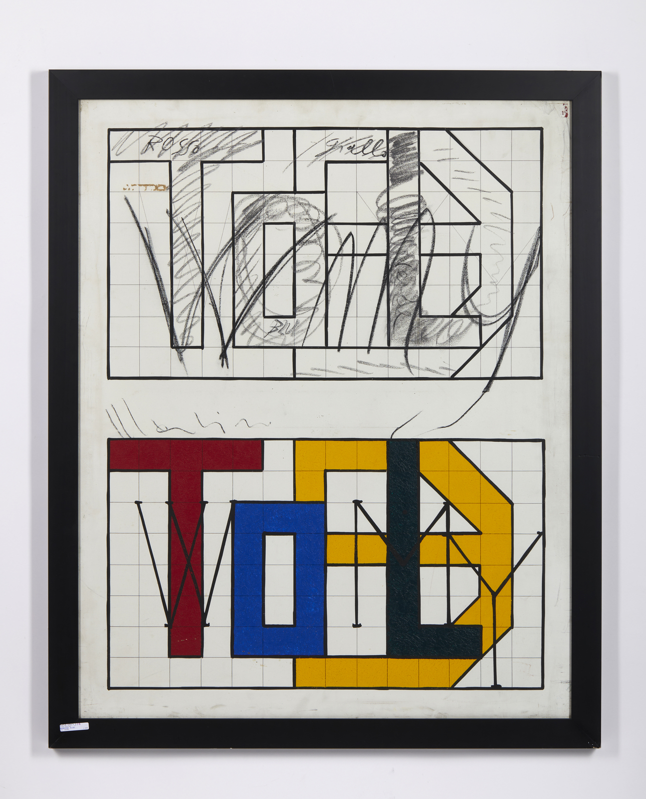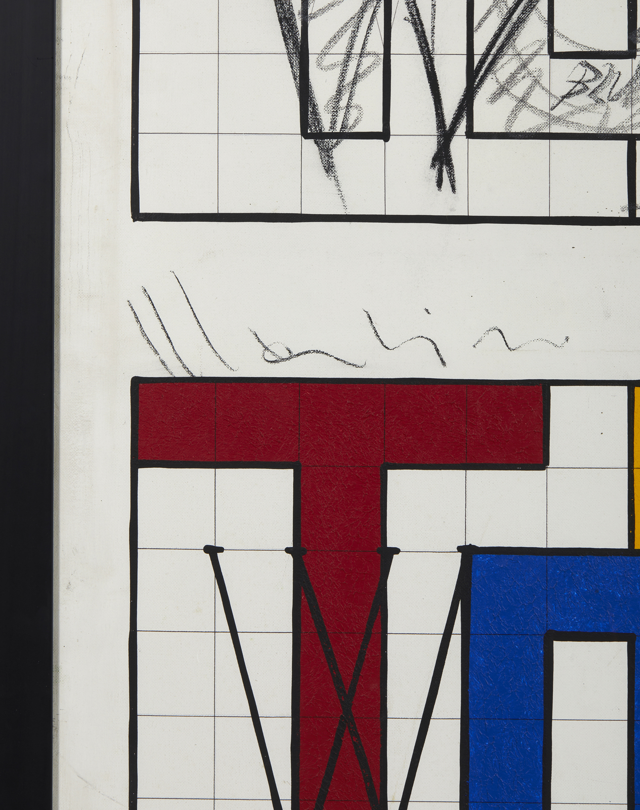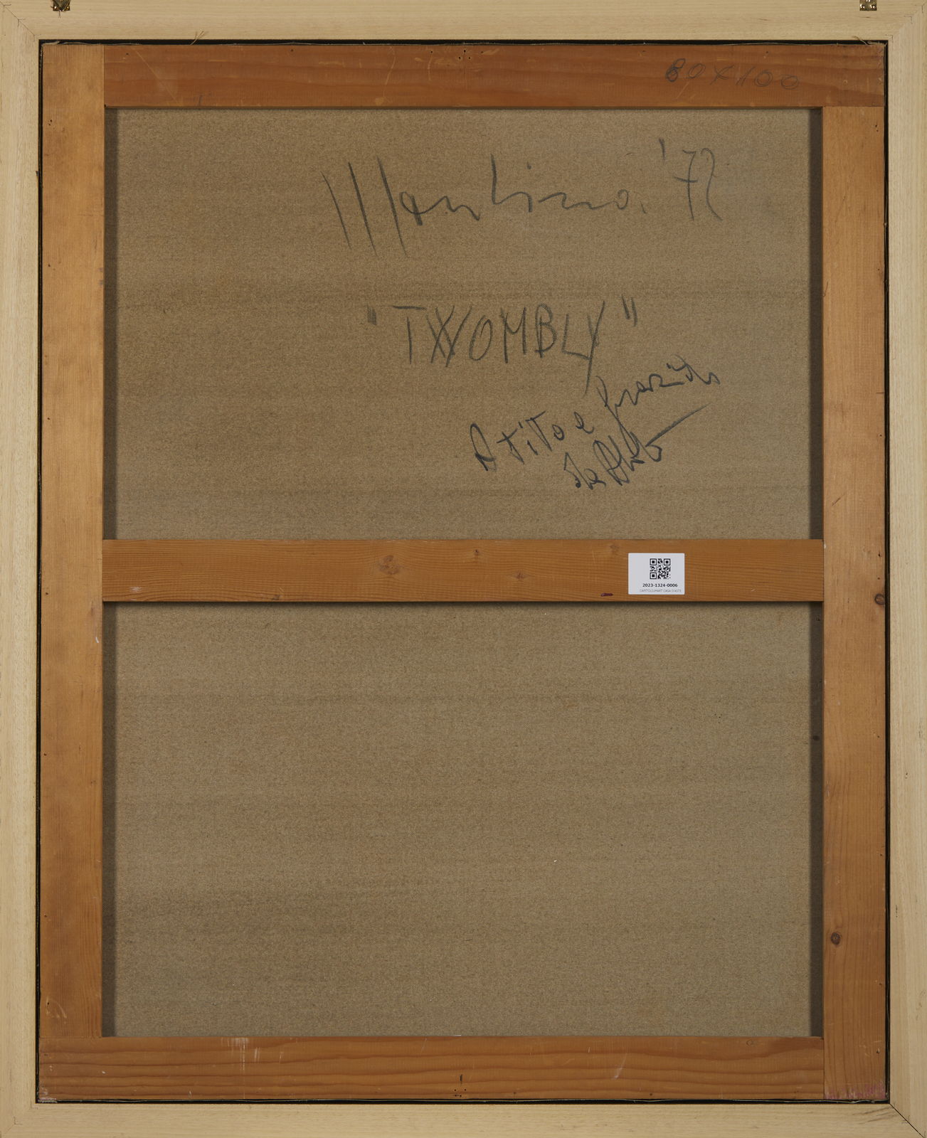 MONDINO ALDO (1938 - 2005) Twombly. 1972. Tecnica mista su tela. Cm 80,00 x 100,00. Firma al centro. Al retro firma, titolo, anno e dedica. Autentica dell'artista su fotografia. Provenienza: Collezione privata, Pavia.