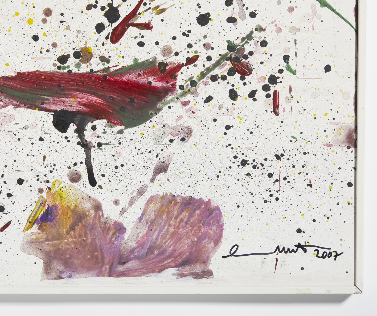 NITSCH HERMANN (1938 - 2022) Senza titolo. 2007. Olio su carta applicata su tavola. Cm 119,50 x 59,00. Firma e anno in basso a destra. Autentica su fotografia O.M. Theater riportante il relativo numero d'inventario.