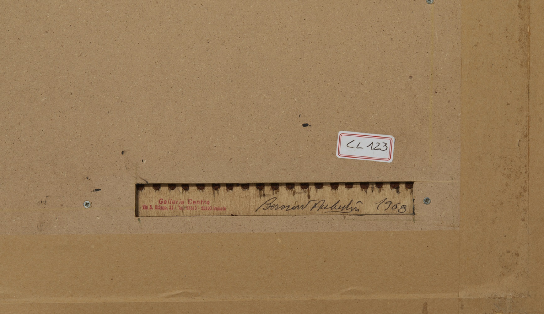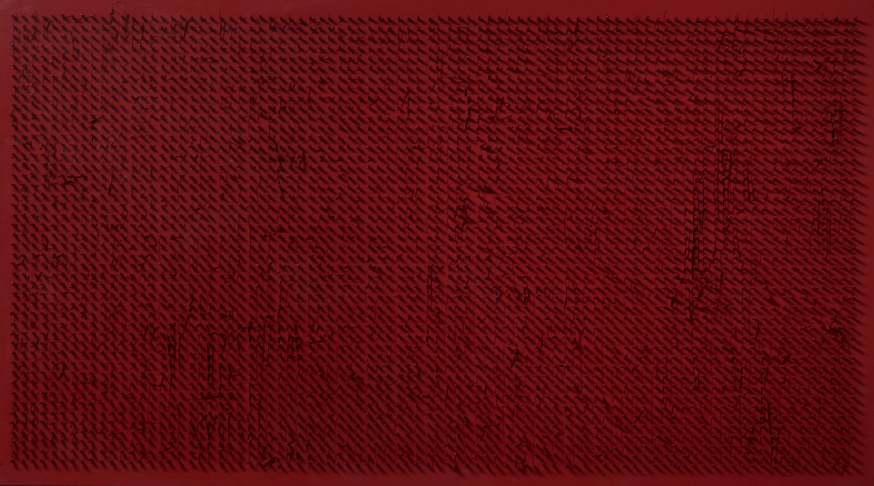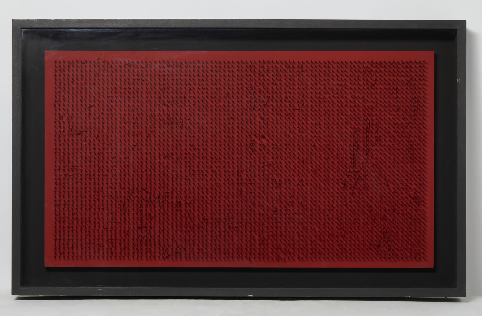 AUBERTIN BERNARD (1934 - 2015) Tableu clous. 1968. Chiodi su tavola. Cm 90,00 x 50,00. Al retro firma, anno, timbro della Galleria Centro, Brescia. Autentica dell'artista su fotografia con timbro dell'Archivio Bernard Aubertin e firma di Giancarlo Rovetta. Cornice presente