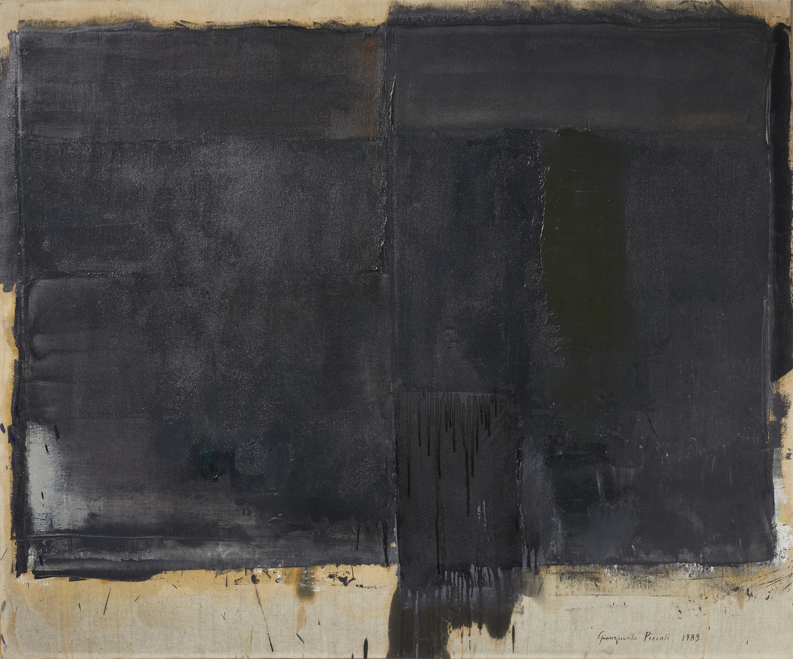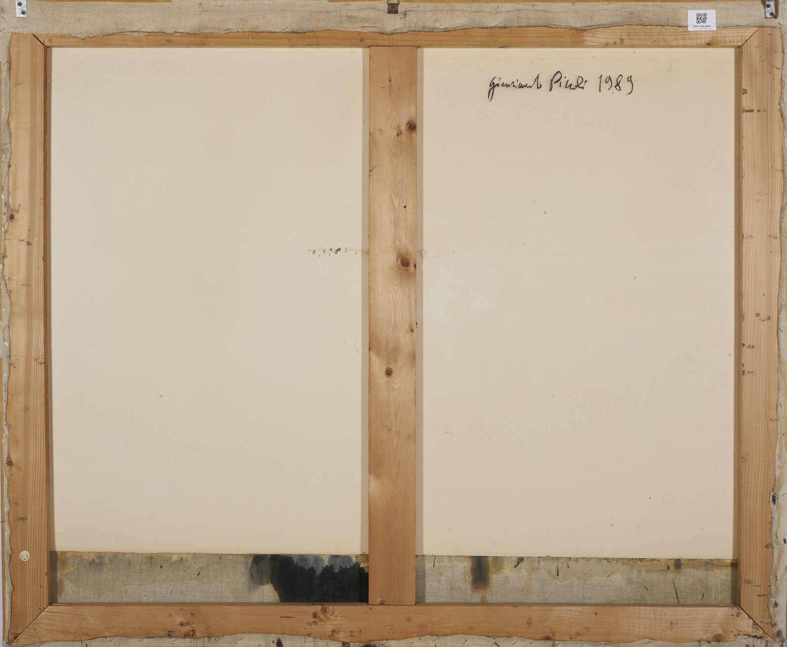 PICCOLI GIANRICCARDO (n. 1941) Senza titolo. 1989. Olio su tela . Cm 150,00 x 125,00. Firma e anno in basso a destra. Al retro firma e anno.