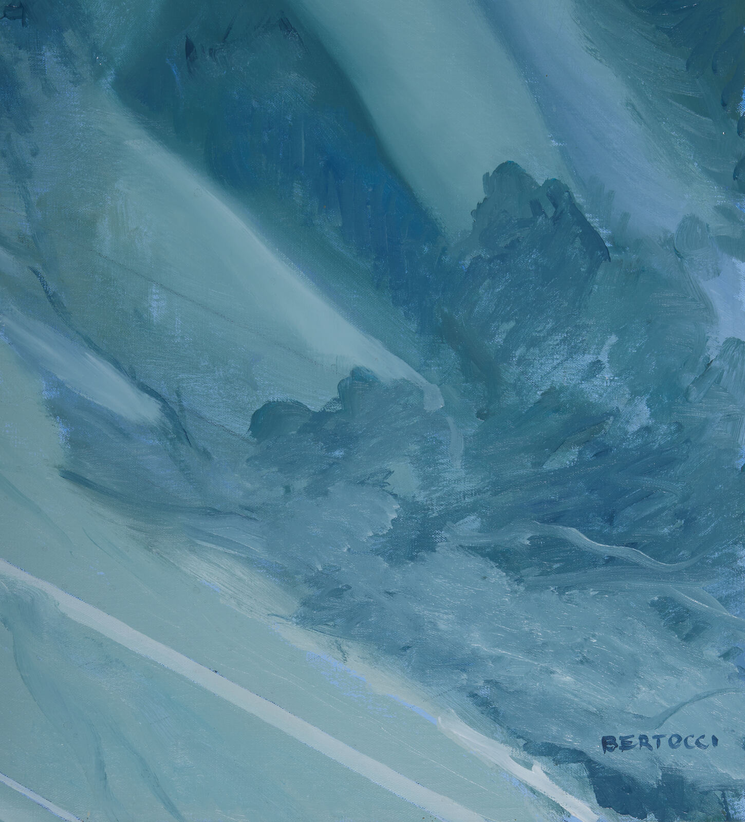 BERTOCCI CARLO (n. 1946) Occasione. Olio su tela . Cm 90,00 x 100,00. Firma in basso a destra. Al retro etichetta Galleria d'arte moderna e contemporanea, Verona.
