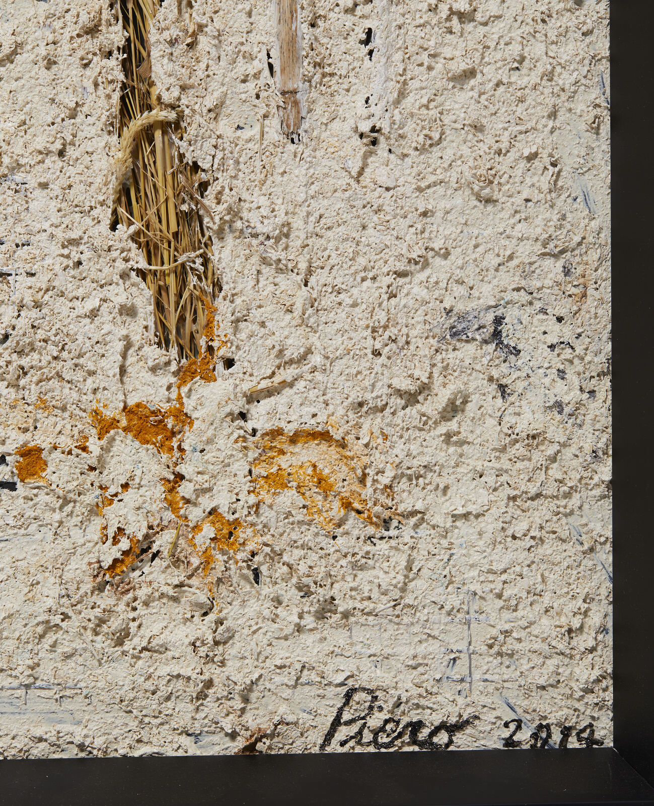 LOMBARDI PIERO (n. 1951) Cogitationes su bianco. 2014. Tecnica mista su tavola. Cm 101,00 x 70,00. Firma e anno in basso a destra. Titolo, firma e anno al retro. Pubblicazioni: Piero Lombardi, Divenendo Forma, p.50. Cornice presente