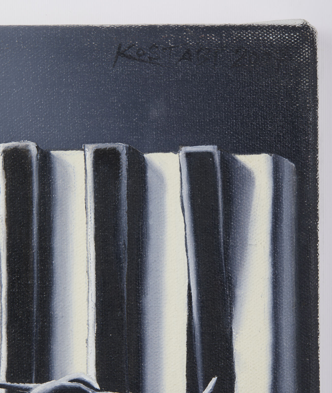 KOSTABI MARK (n. 1960) Beyond the infinite. 2014. Olio su tela . Cm 25,00 x 30,00 x 3,00. Firma in alto a destra. Autentica dell'artista su fotografia. Cornice presente