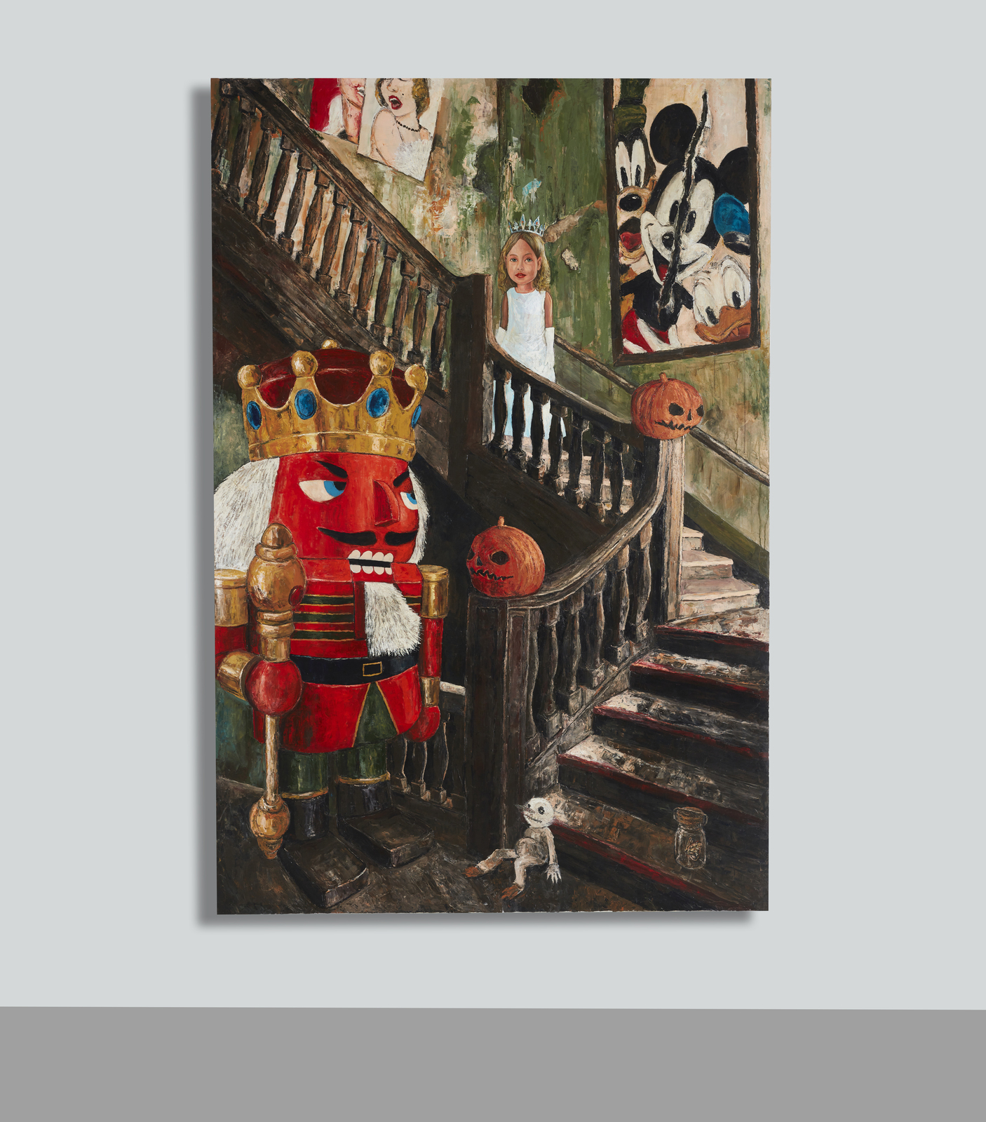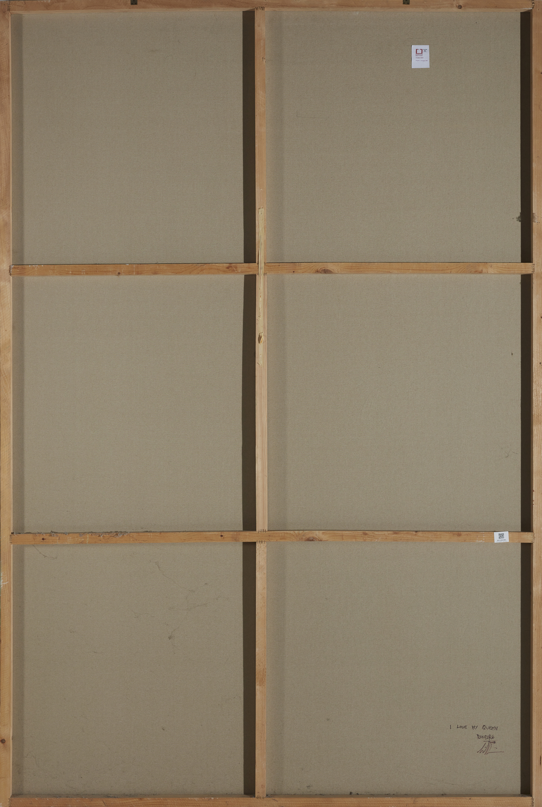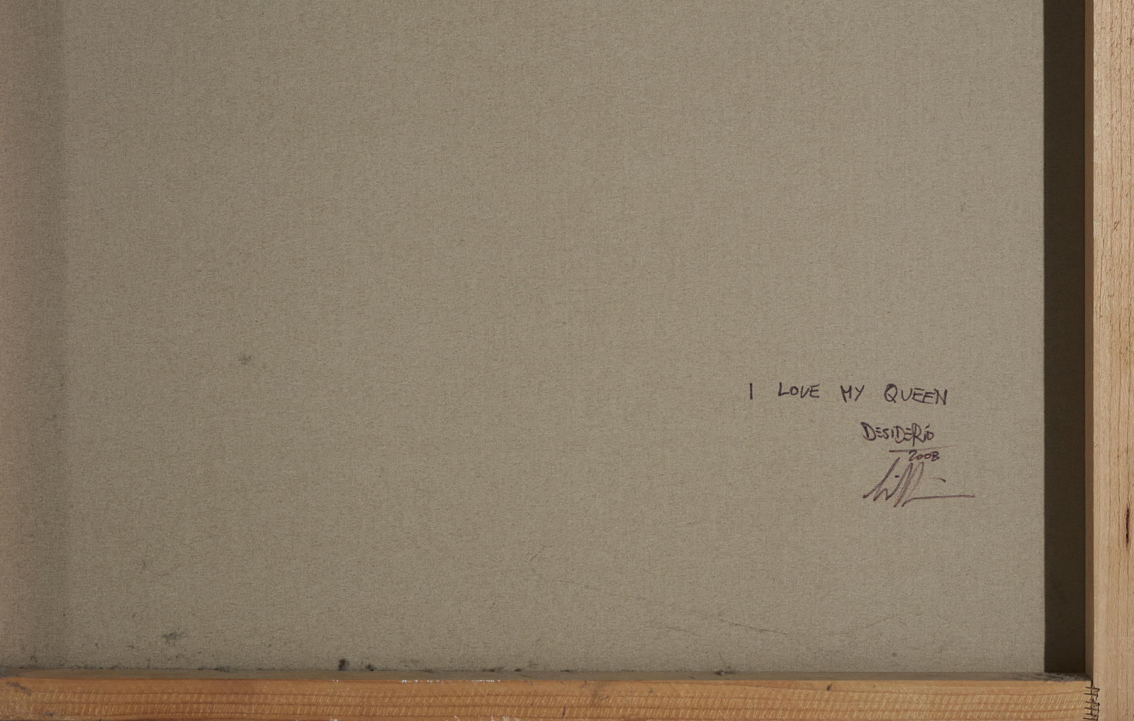 DESIDERIO (n. 1978) I love my queen. 2008. Acrilico su tela. Cm 200,00 x 300,00. Al retro titolo, firma e anno. Etichetta Fabbrica Borroni, Bollate, take off, 18 aprile-10 maggio, 2009. Autentica dell'artista su fotografia.