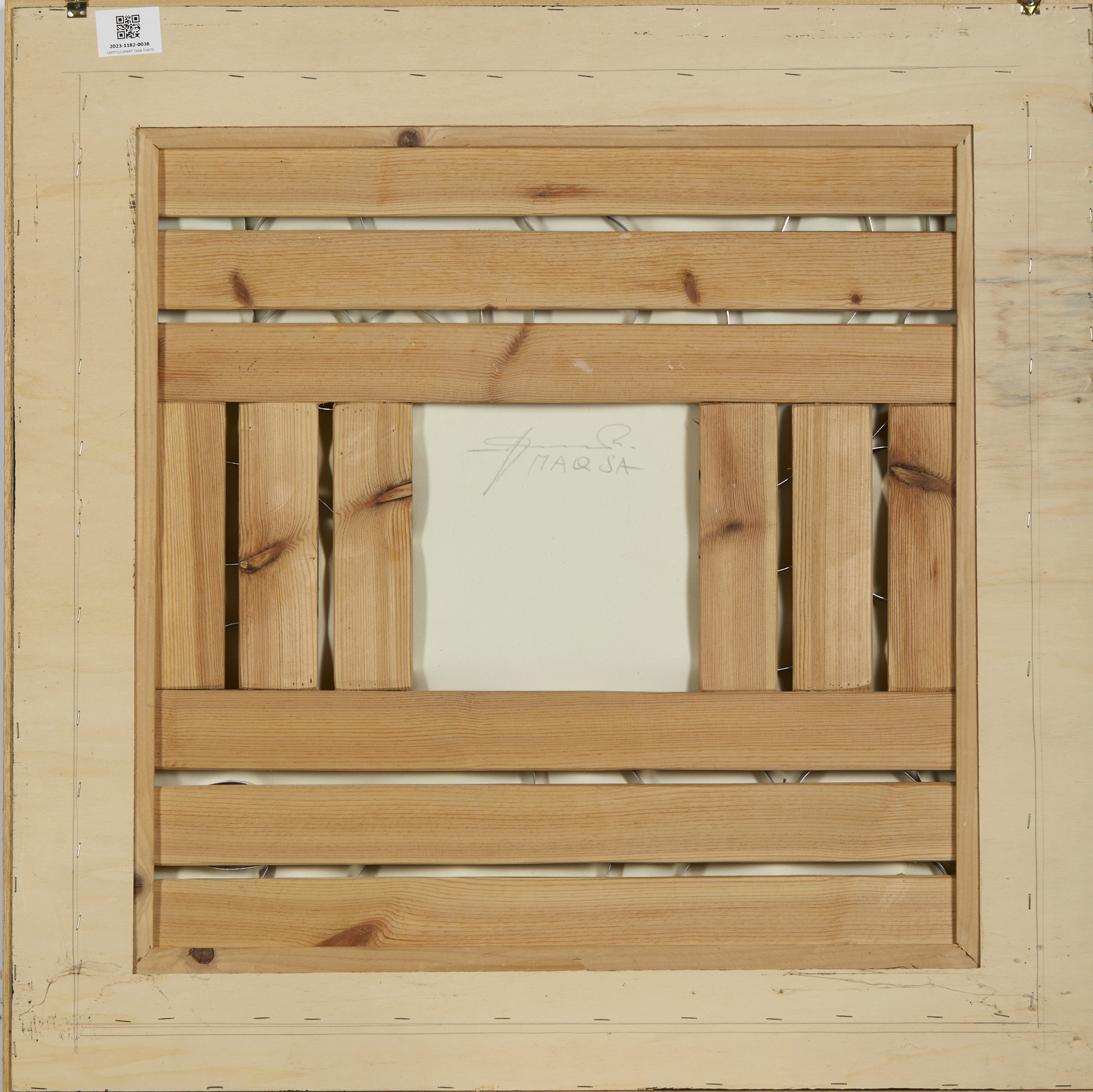 AMADIO GIUSEPPE (n. 1944) Maqsa. 2000. Acrilico su tela estroflessa. Cm 75,50 x 75,50. Firma al retro. Autentica dell'artista su fotografia con timbro della Galleria D'Arte di Roncoletta, Verona. Cornice presente