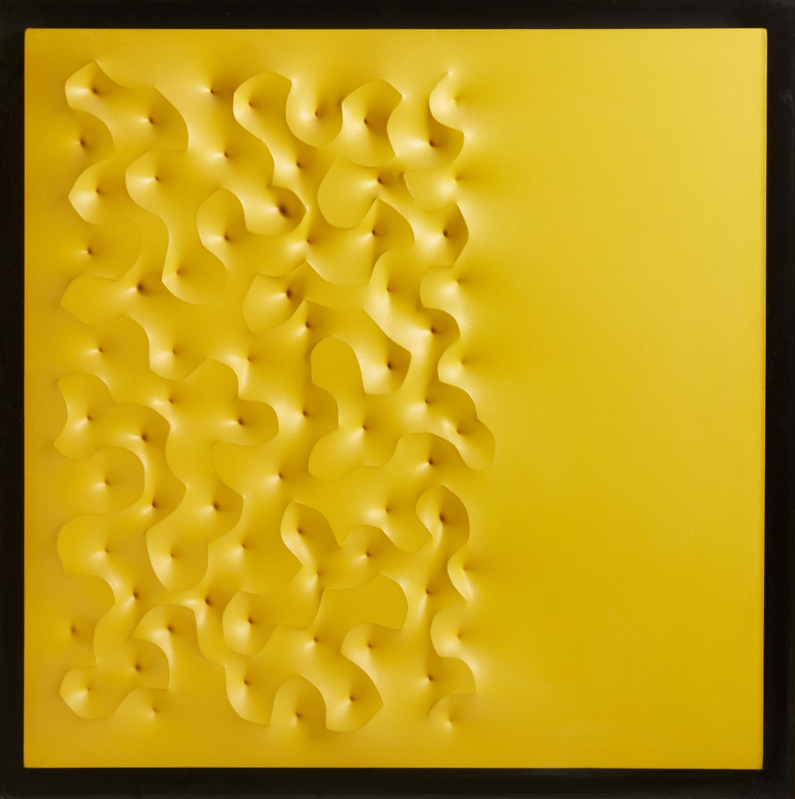 AMADIO GIUSEPPE (n. 1944) Area-CLC. 2003. Acrilico su tela estroflessa. Cm 80,00 x 80,00. Al retro titolo e firma. Autentica dell'artista su fotografia con timbro dello studio Giuseppe Amadio. Cornice presente