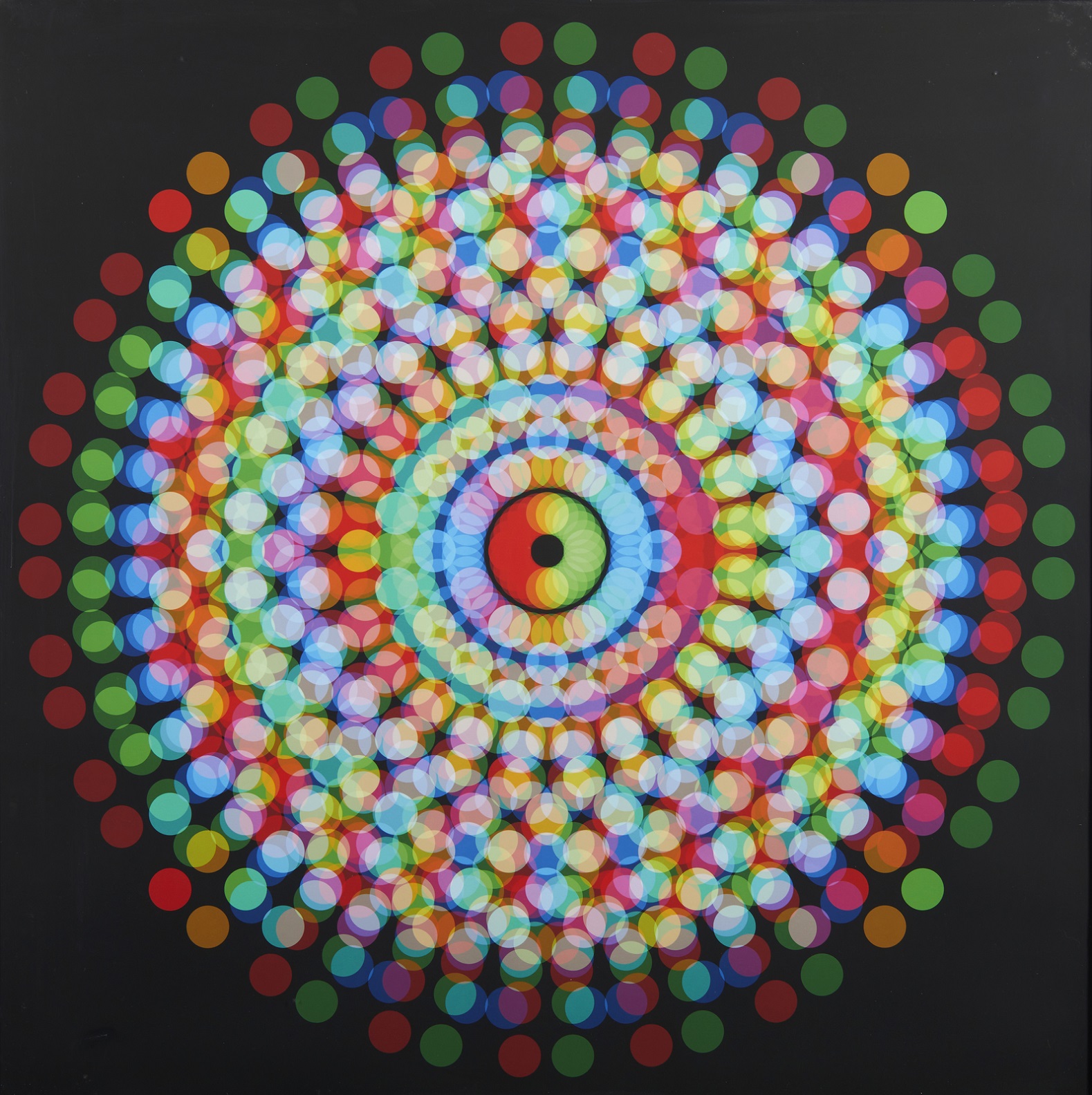 GRUPPO MID (n. 1964) Immagine sintetica, cerchi su griglia quadrata, livello di complessità 5.. 1972. Stampa fotografica. Cm 100,00 x 100,00. 1965-1972. Esemplare unico, sul retro etichetta firmata. Autentica Atelier Barrese su fotografia.