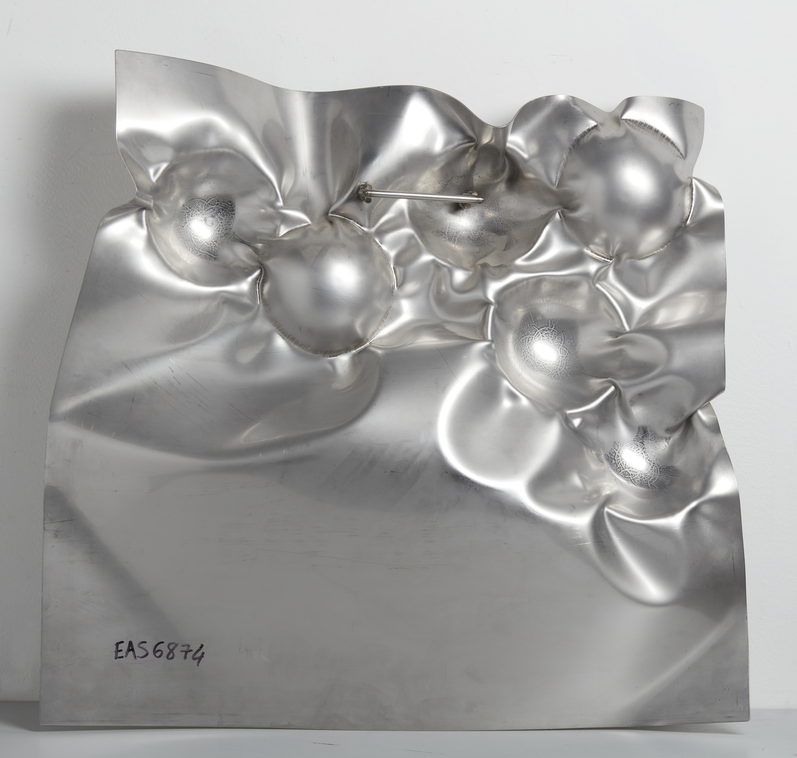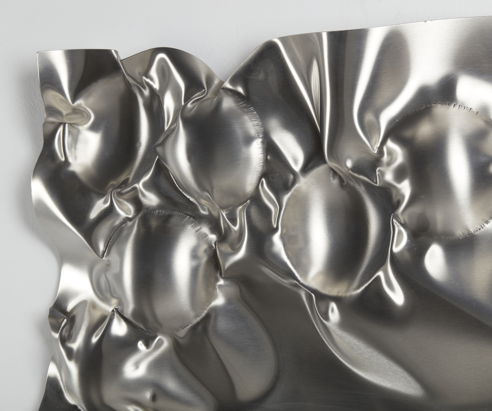 XHIXHA HELIDON (n. 1970) Energia. 2008. Acciaio satinato.. Cm 74,00 x 68,00. Autentica dell'artista su fotografia con il relativo numero d'inventario. Pubblicazioni: Xhixha - Leggero come l'acciaio a cura di Enrico Badellino, Edizioni Skira, p. 40.